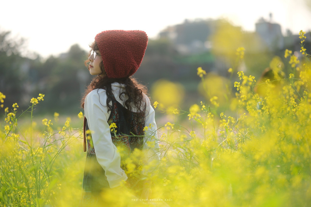 Không còn là bãi bồi ven sông khô khan, bến hoa Phúc Xá (phường Hồng Hà, TP Hà Nội) những ngày này đã khoác lên mình diện mạo mới đầy sức sống. Điểm nhấn ấn tượng nhất chính là cánh đồng hoa cải vàng đang vào độ nở rộ nhất. Từng luống cải vươn cao quá đầu người, trải dài miên man, tạo nên một biển hoa vàng óng ả lay nhẹ trong gió đông. Ảnh Nguyen Thuong