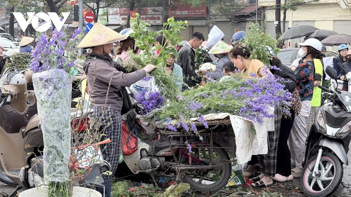 Hoa tươi đắt giá chiều 29 Tết tại nhiều chợ ở Hà Nội