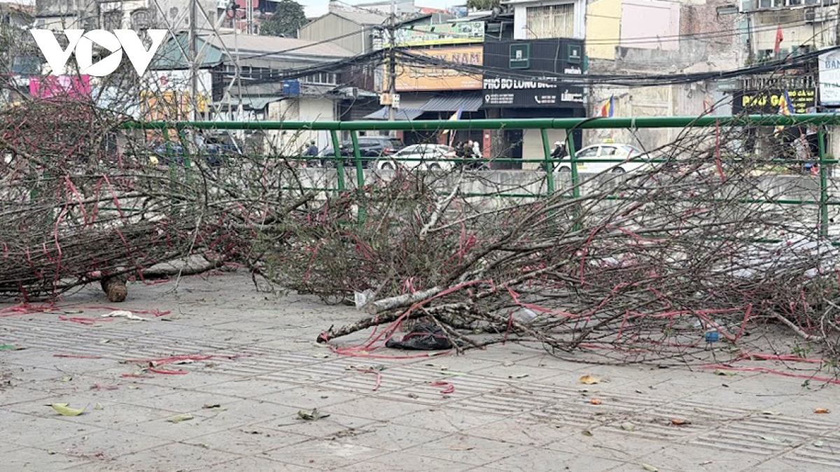 Một điều đang chú ý tại các phố, chợ hoa cây cảnh Tết ở Hà Nội dù qua nhiều năm vẫn chưa thay đổi, đó là tình trạng tiểu thương thải bỏ thân, cành cây đào, quất và hoa tươi ngay sau khi kết thúc thời vụ kinh doanh. Vỉa hè ở nhiều tuyến phố vẫn còn những đống lớn cành đào chết, khô héo không được thu dọn gọn vào đúng điểm tập kết. Các loại cành hoa sau khi cắt tỉa cũng được “trải thảm” ngay tại chỗ gây mất mỹ quan, mất vệ sinh và tốn thêm rất nhiều công sức và thời gian của đội ngũ công nhân môi trường và lực lượng quản lý đô thị.