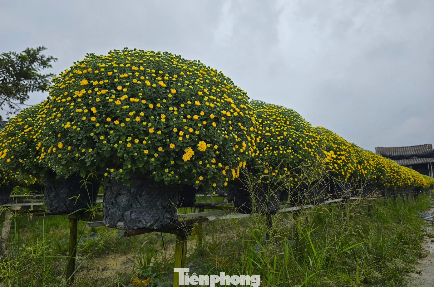 Khoảng 50% trong tổng số 1.700 chậu cúc mâm xôi của gia đình chị Thiểm bị nở sớm do năm nay trời mưa nhiều. Dù nở sớm hoa vẫn đẹp, chuẩn, tàn lớn nên chị không bán lỗ để cố gắng thu hồi vốn.