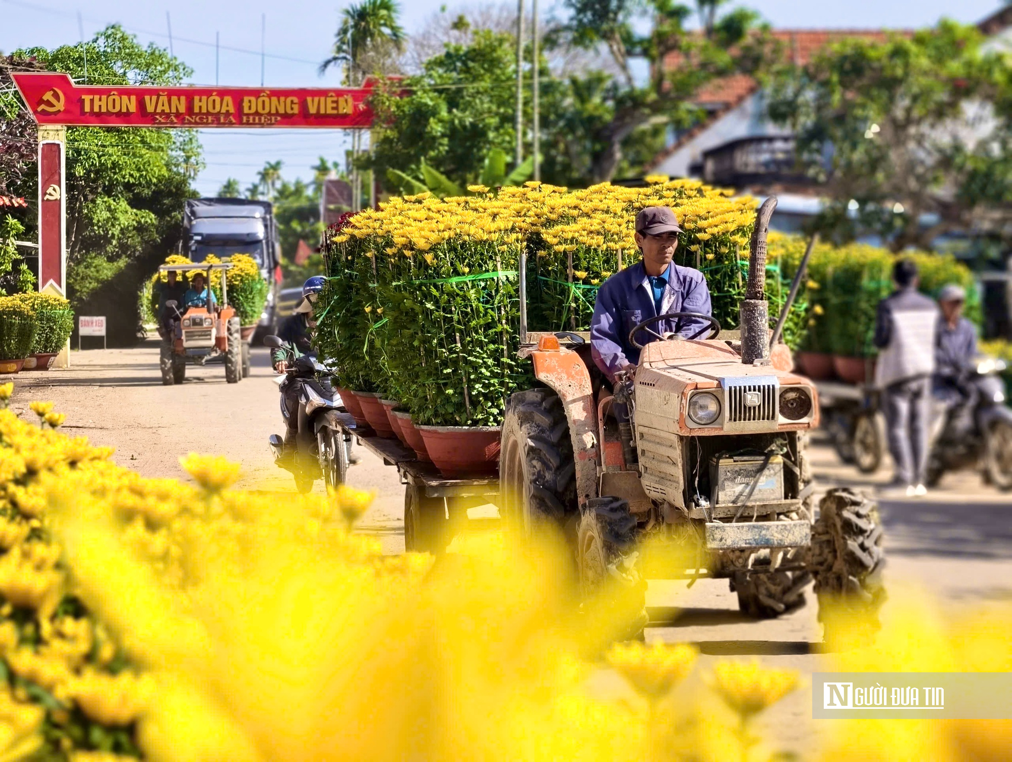 Ông Trần Xuân Lâm, thương lái ở Quảng Trị, cho hay, năm nay ông đặt mua hơn 10.000 chậu cúc tại Nghĩa Hiệp. “Giá hoa tăng từ 10.000 đến 50.000 đồng mỗi chậu, do diện tích trồng hoa ở nhiều nơi bị ảnh hưởng bởi mưa lũ, trong khi nhu cầu Tết vẫn cao”, ông Lâm chia sẻ.