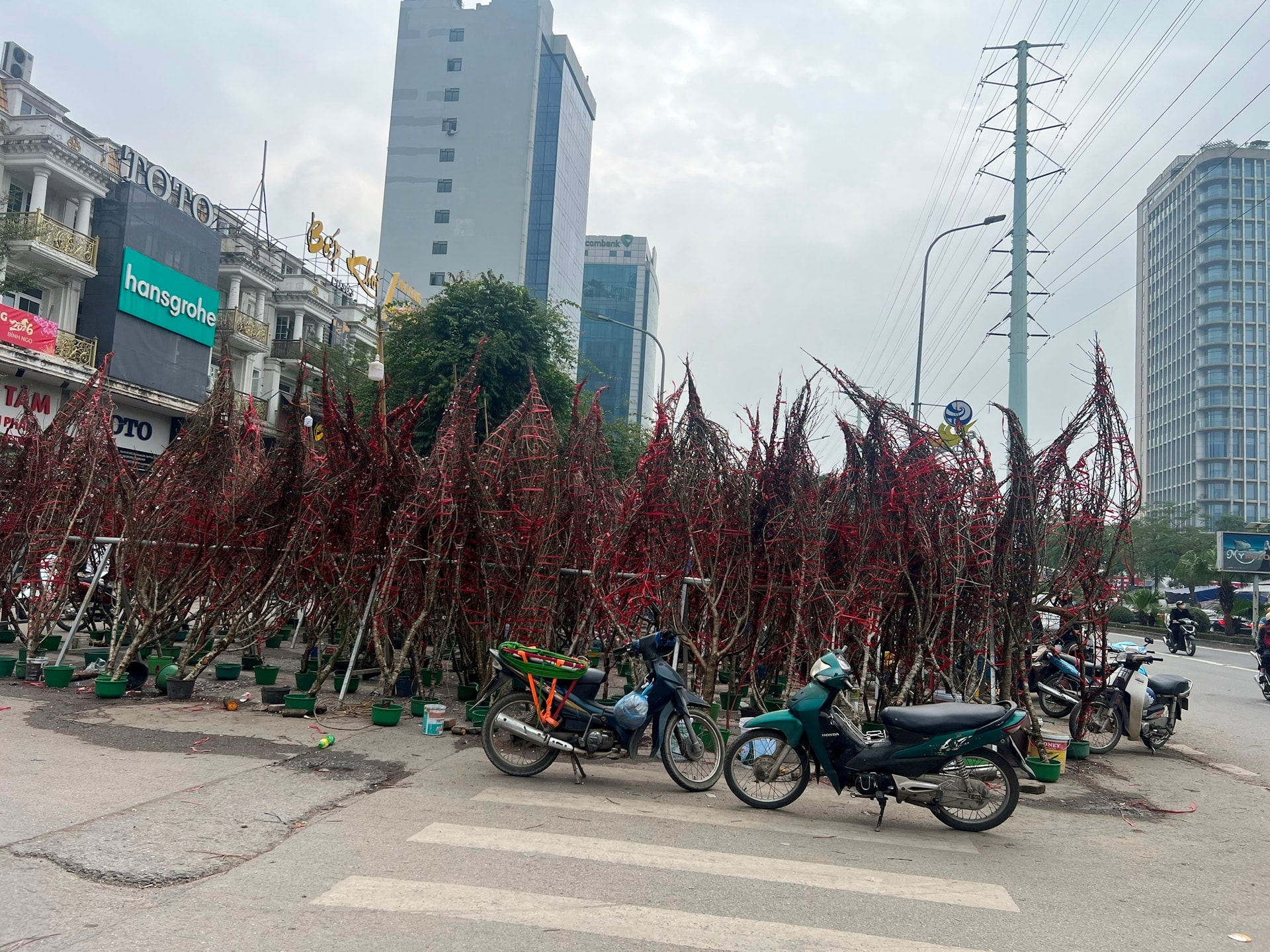 Khảo sát của phóng viên vào ngày 12 và 13-2 (tức 25, 26 tháng Chạp) tại các tuyến đường, khu vực trọng điểm bán hoa, cây cảnh như: Tố Hữu, Lê Quang Đạo, Lạc Long Quân, Âu Cơ, Tô Hiệu… cho thấy một thực tế phũ phàng: Đào bày bán rất nhiều nhưng người mua thưa tớt. Những cành đào dáng huyền hay cành đào rừng to lớn, sang trọng từng là mốt của những năm trước, nay trở nên khó bán hơn bao giờ hết.