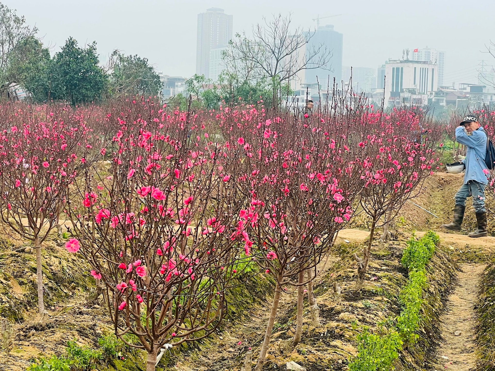 Nhìn vườn đào bung nở trước Tết, người trông đào Hà Nội xót xa. Ảnh chụp tại vùng trồng đào phường Dương Nội. Ảnh: TH