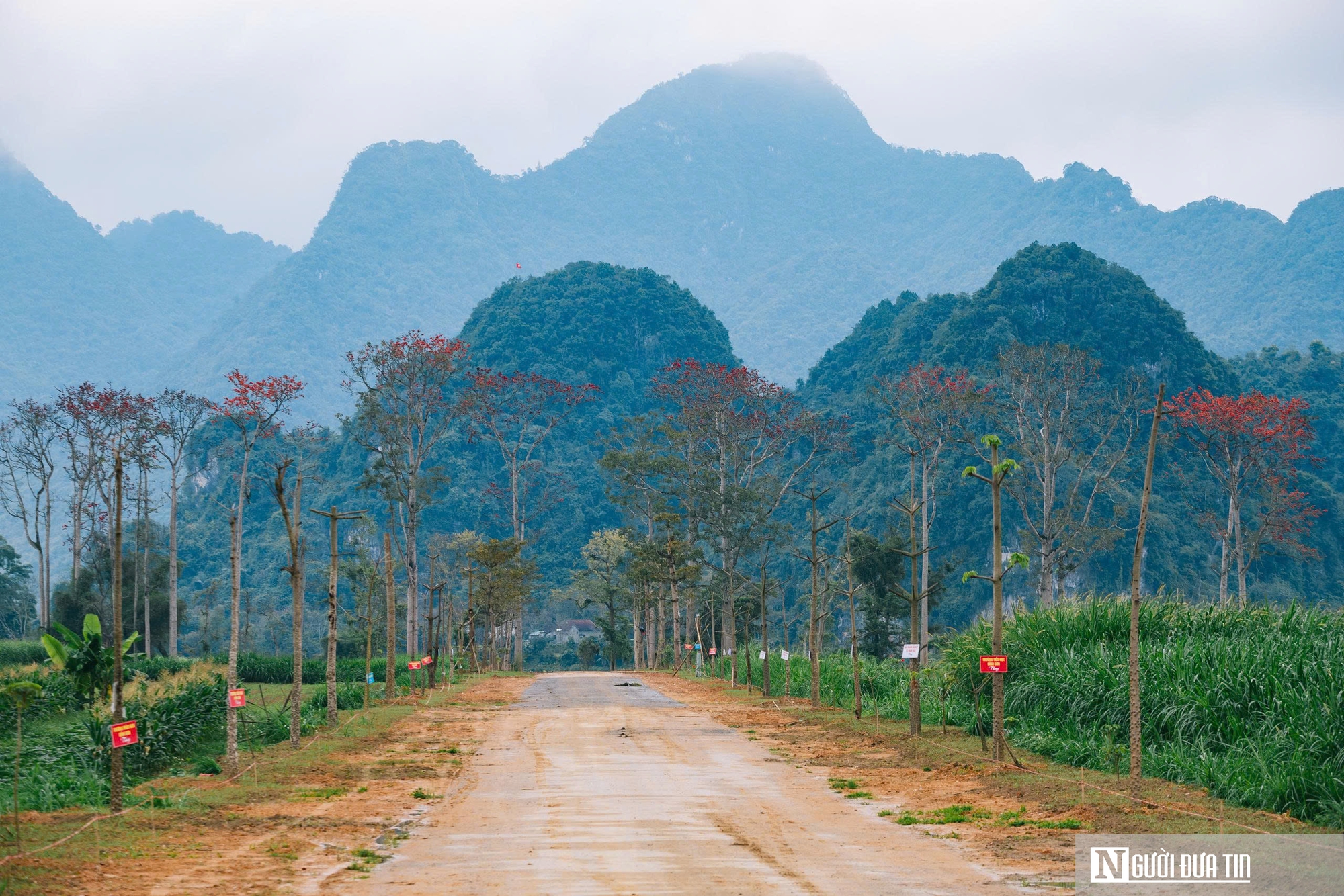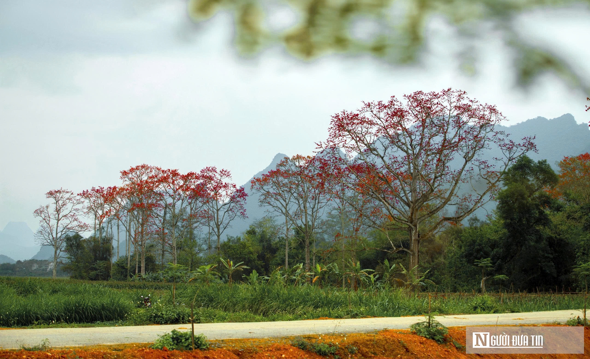 Cây gạo đỏ rực trong sắc xanh của những cánh rừng, trong làng mạc trù phú, tạo điểm nhấn đặc biệt cho vùng đất Nhân Hòa. Đây cũng là một trong những cảnh đẹp thiên nhiên hiếm có ở Nghệ An.
