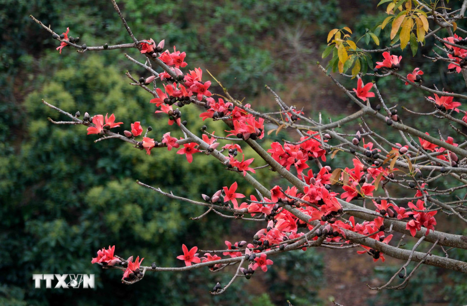 Những bông hoa gạo rực đỏ trên núi rừng Điện Biên. (Ảnh: Trung Kiên/TTXVN)