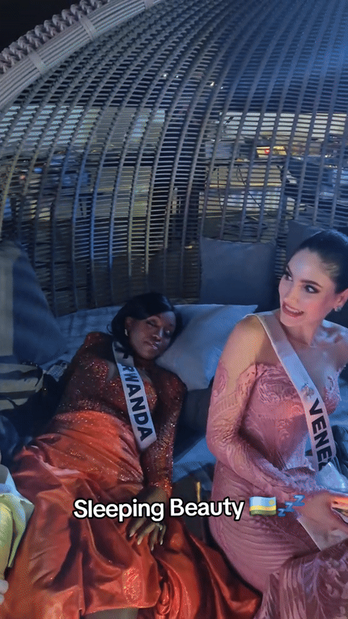 Mới đây, một khoảnh khắc hài hước tại Miss Universe 2025 đang được chia sẻ rầm rộ trên mạng xã hội. Trong đoạn clip lan truyền, người đẹp đến từ Rwanda là Solange Tuyishime Keita đã vô tư ngủ gật ngay giữa một hoạt động ngoài trời vào ban đêm.