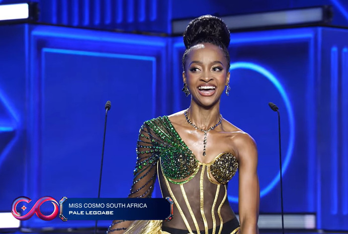 Trước đó, trong một phần thi thuyết trình quan trọng của Miss Cosmo, Pale Legoabe đã xuất sắc lọt vào Top 2, cho thấy tư duy mạch lạc, quan điểm rõ ràng và khả năng truyền cảm hứng.