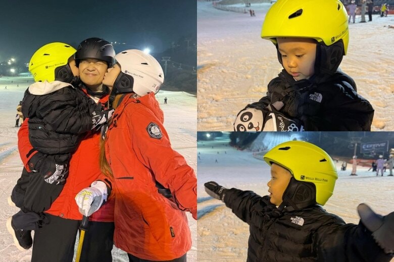 Quý tử nhà Minh Hằng được ba mẹ cho đi trải nghiệm trượt tuyết.
