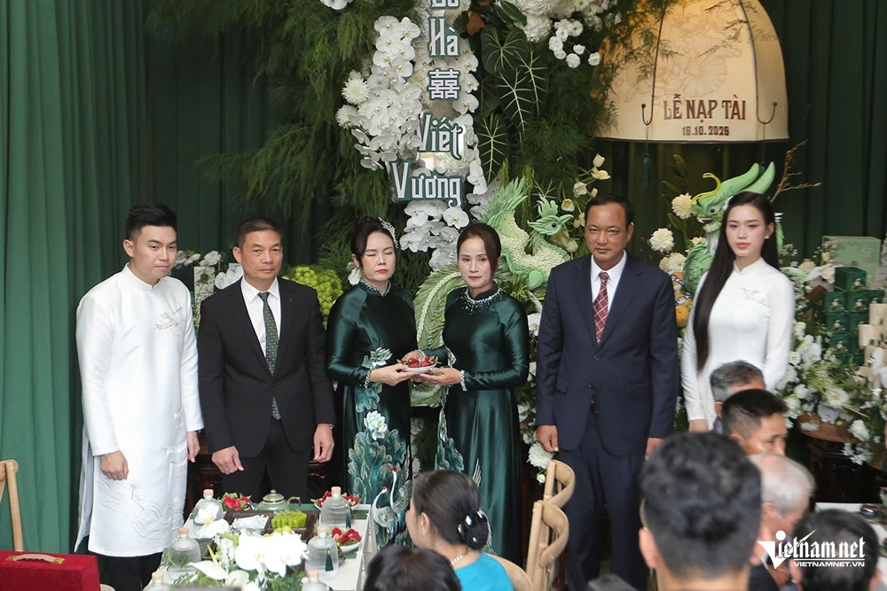 Hai bên gia đình trong đám hỏi của hoa hậu Đỗ Thị Hà và doanh nhân Nguyễn Viết Vương.