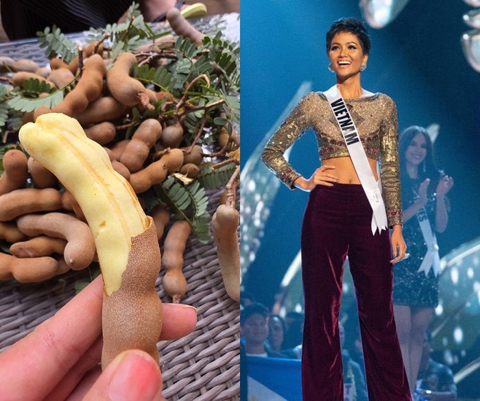 Trong những hình ảnh được đăng tải, H’Hen Niê không ngần ngại tự tay leo lên cây để hái trái. Cô miêu tả chi tiết hương vị của trái me theo từng độ chín, từ lúc còn xanh, dốt bột cho đến khi chín đen. Sự gần gũi, mộc mạc của nàng hậu khi tự tay thu hoạch hoa lợi trong vườn nhà khiến nhiều người hâm mộ cảm thấy thú vị và ấm lòng.