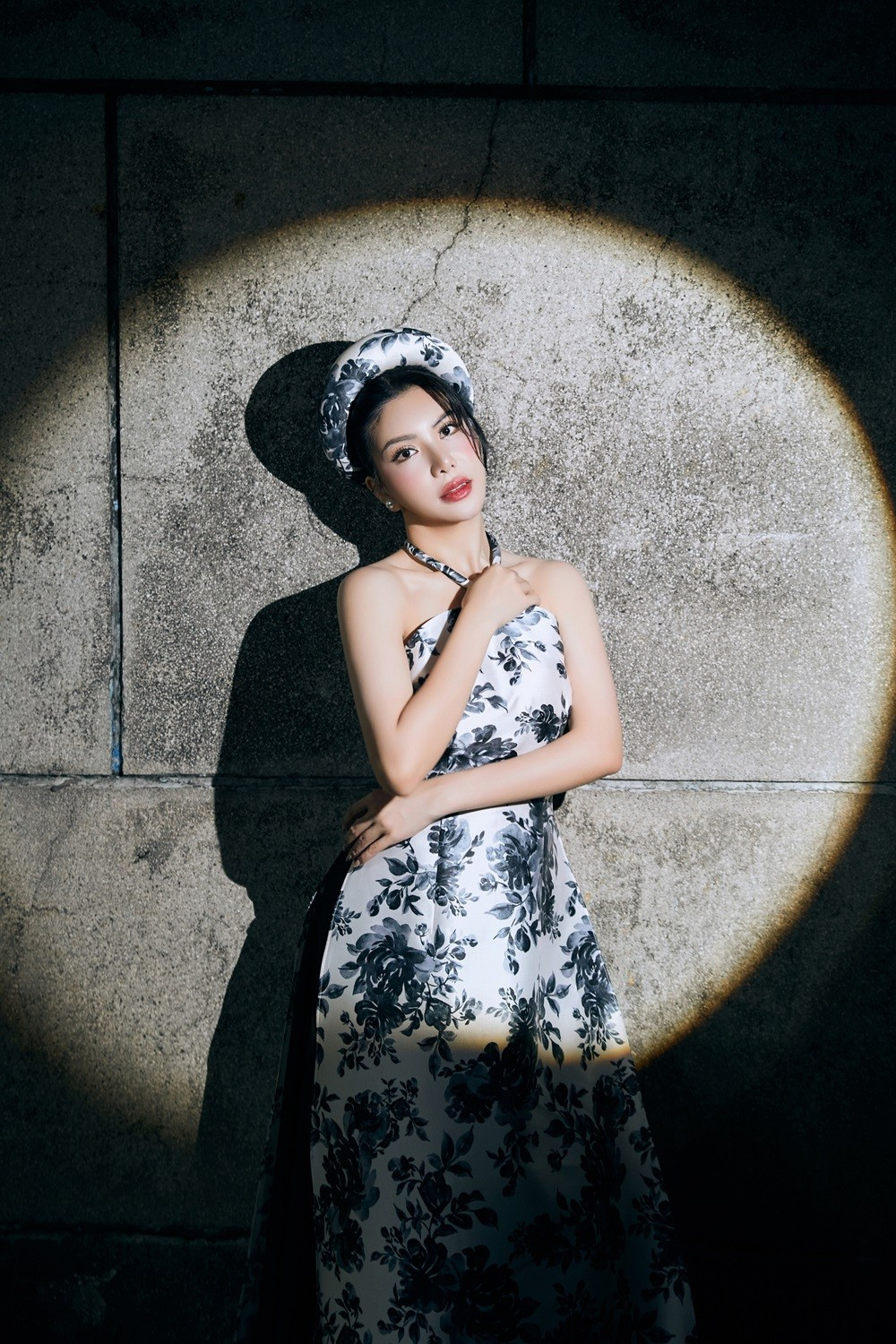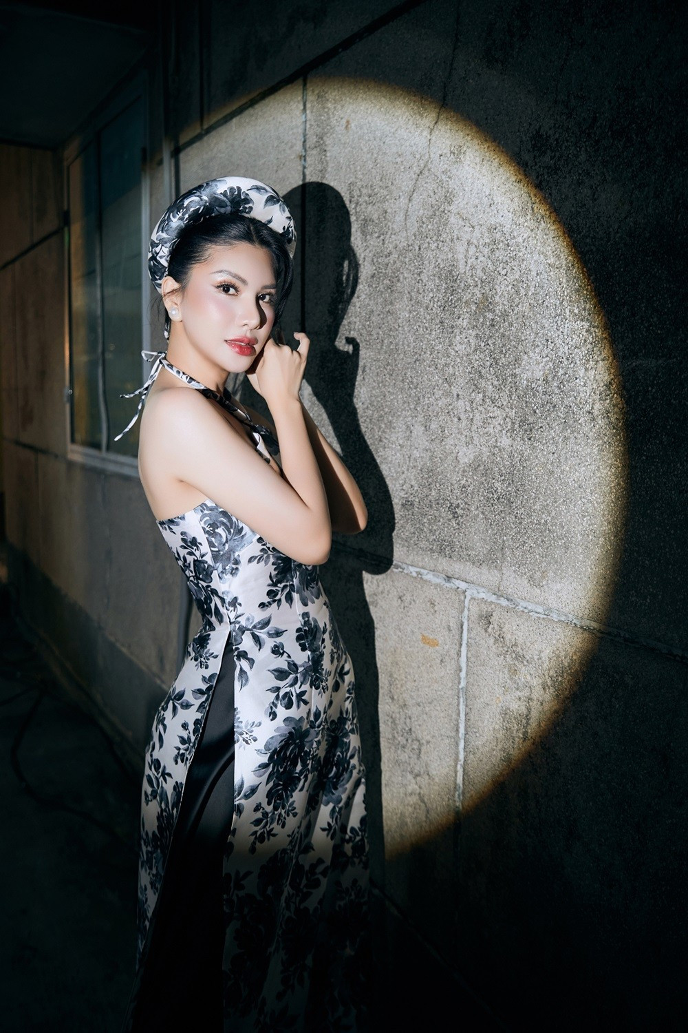 Có mặt trong chung kết cuộc thi Nét đẹp sinh viên Đại học Bình Dương 2025 (Miss & Mister BDU 2025), Loan Vương không diện trang phục dạ hội đính kết cầu kỳ, không trang sức lấp lánh mà diện tà áo dài kết hợp cùng khăn vấn.