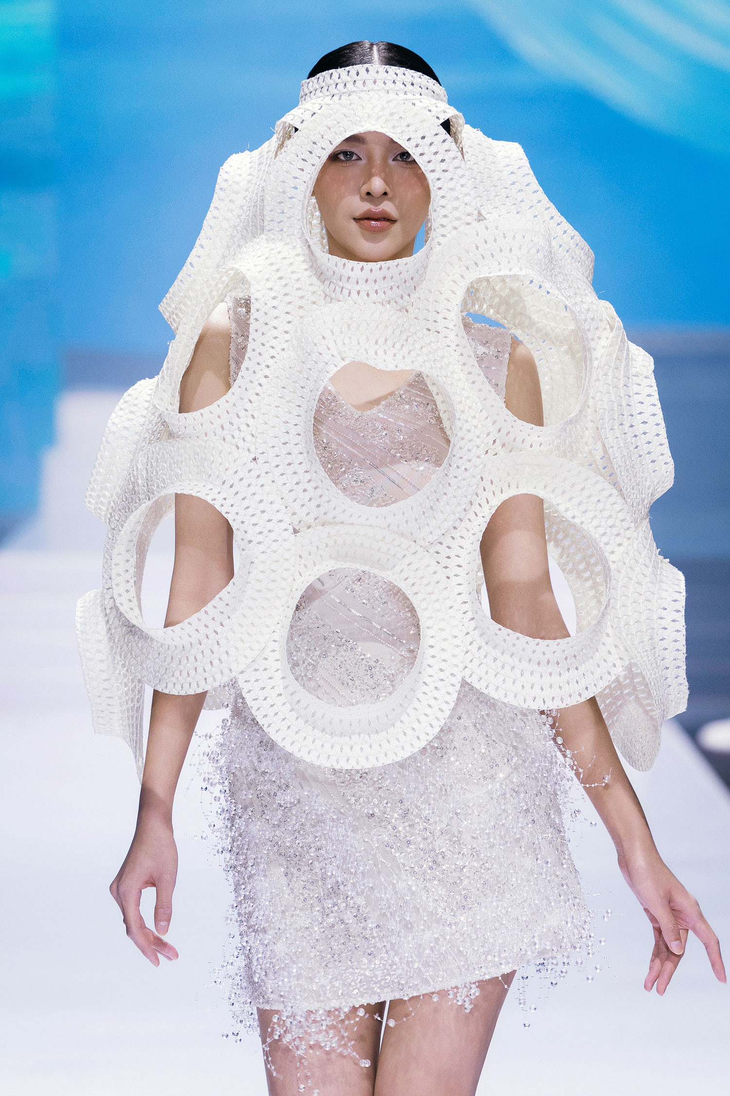 Nhà thiết kế Vũ Việt Hà, Hà Linh Thư, Chula giới thiệu bộ sưu tập trong đêm diễn đầu tiên. Hoa hậu Thanh Thủy hóa thành dòng nước trong trẻo, mở màn bộ sưu tập "Khởi nguồn thuần khiết" của Vũ Việt Hà.