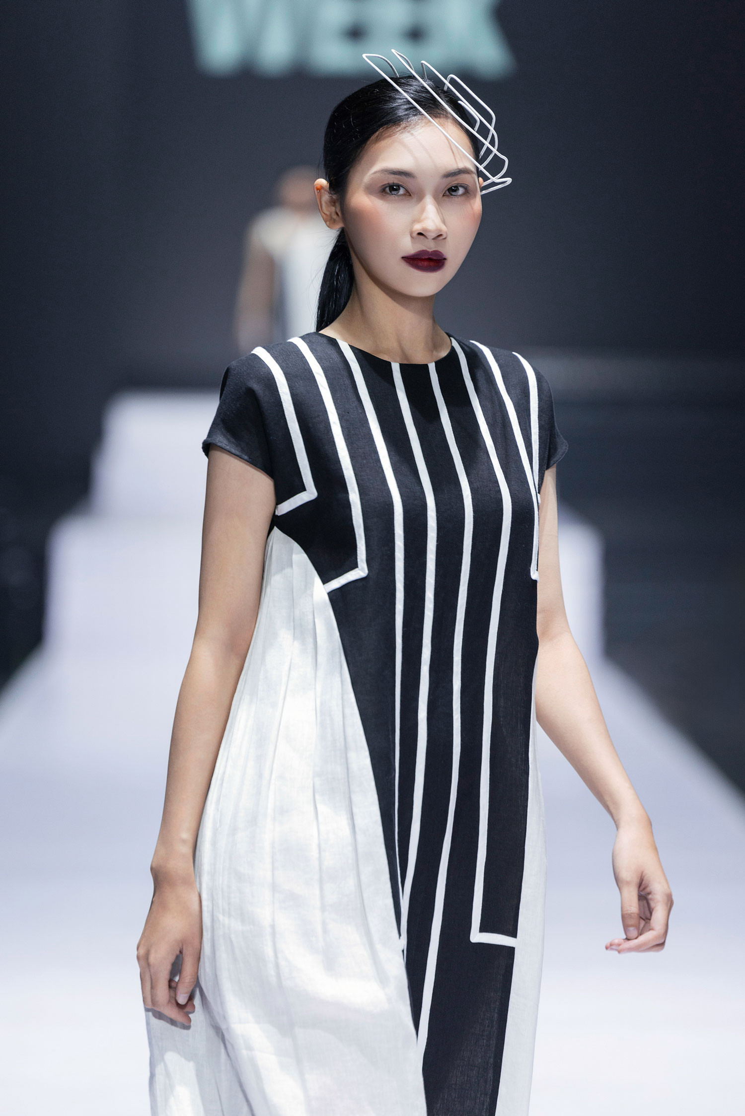 NTK Hà Linh Thư mang tới bộ sưu tập "Black Parade", lấy cảm hứng từ nhạc rock và ca khúc "Welcome to the Black Parade" của "My Chemical Romance" đồng thời tôn vinh tinh thần quân đội - biểu tượng của kỷ luật, danh dự và lòng dũng cảm.