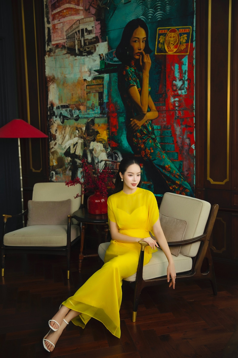 Trong không khí rộn ràng của những ngày đầu năm, Miss International 2024 Huỳnh Thị Thanh Thủy khoe sắc rạng rỡ với những thiết kế mới nhất từ BST Tết 2026 của NTK Lê Thanh Hòa. Thiết kế đầu tiên mà Thanh Thủy lựa chọn là bộ váy vàng rực rỡ với phom dáng trễ vai thanh lịch. Tầng váy xếp ly mềm mại tạo hiệu ứng chuyển động nhẹ nhàng, giúp người đẹp 24 tuổi toát lên vẻ tươi trói và năng động.