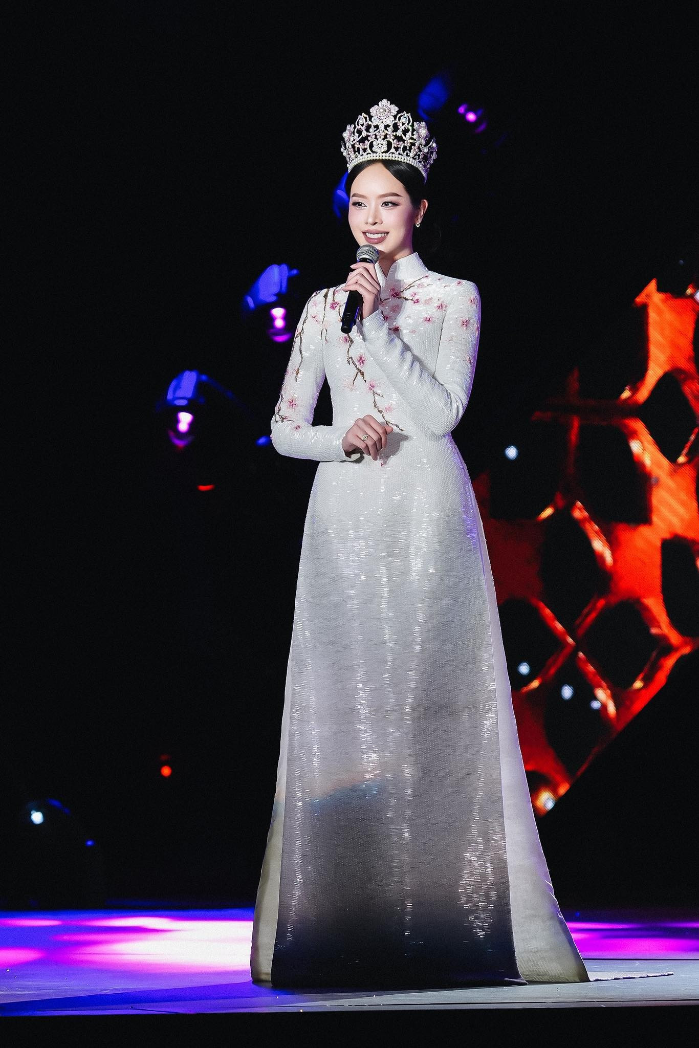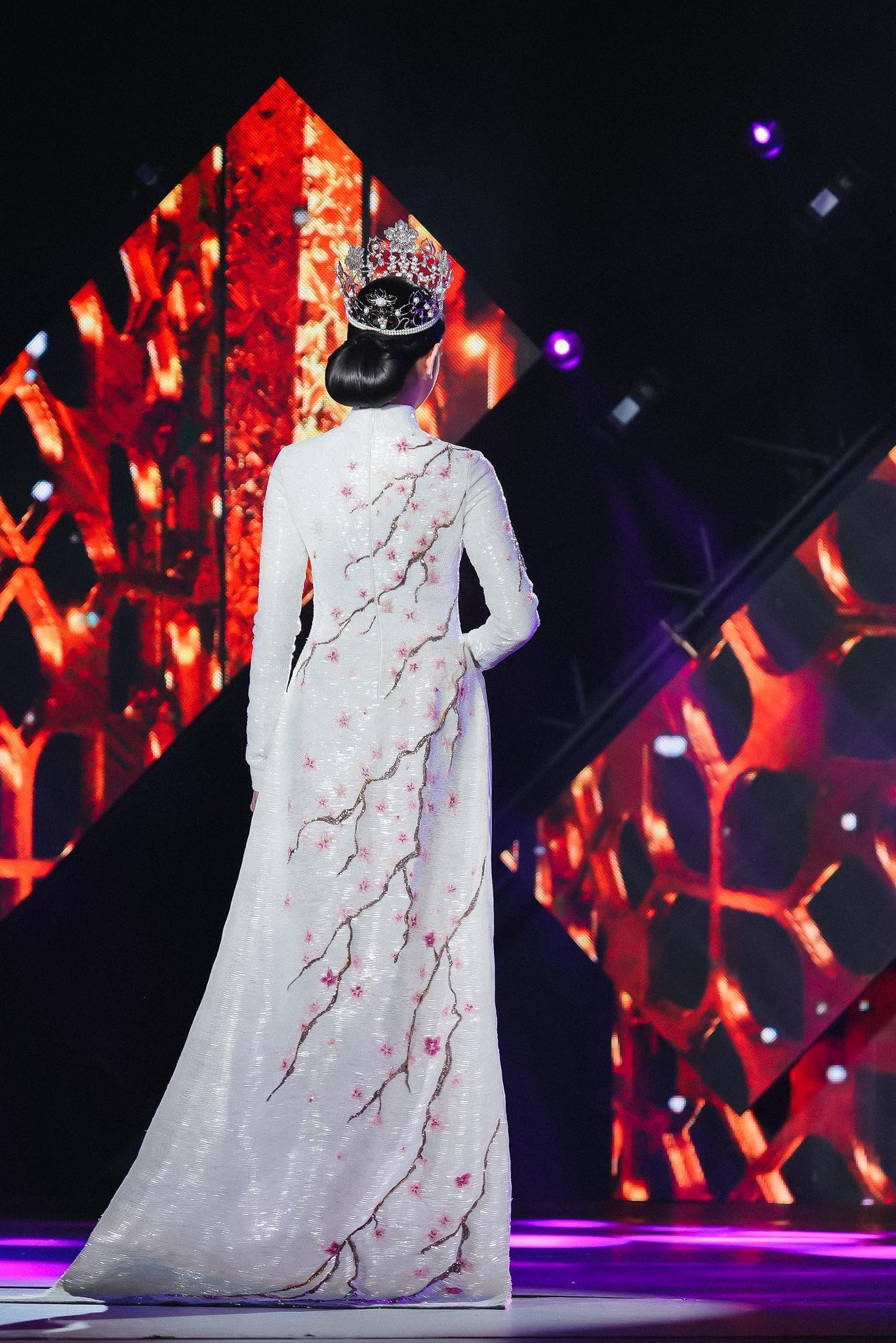Không chỉ ghi điểm với hành động ấm áp dành cho Kiều Duy, Thanh Thủy còn được khen khéo chọn trang phục final walk. Bộ áo dài trắng đính kết những cành hoa anh đào đã pha trộn hài hòa những nét đẹp của Việt Nam, Nhật Bản. NTK Lê Thanh Hòa tiết lộ trang phục nặng tới 10 kg do đính kết pha lê, hạt cườm kín toàn bộ áo để tạo hiệu ứng lấp lánh dưới ánh đèn.