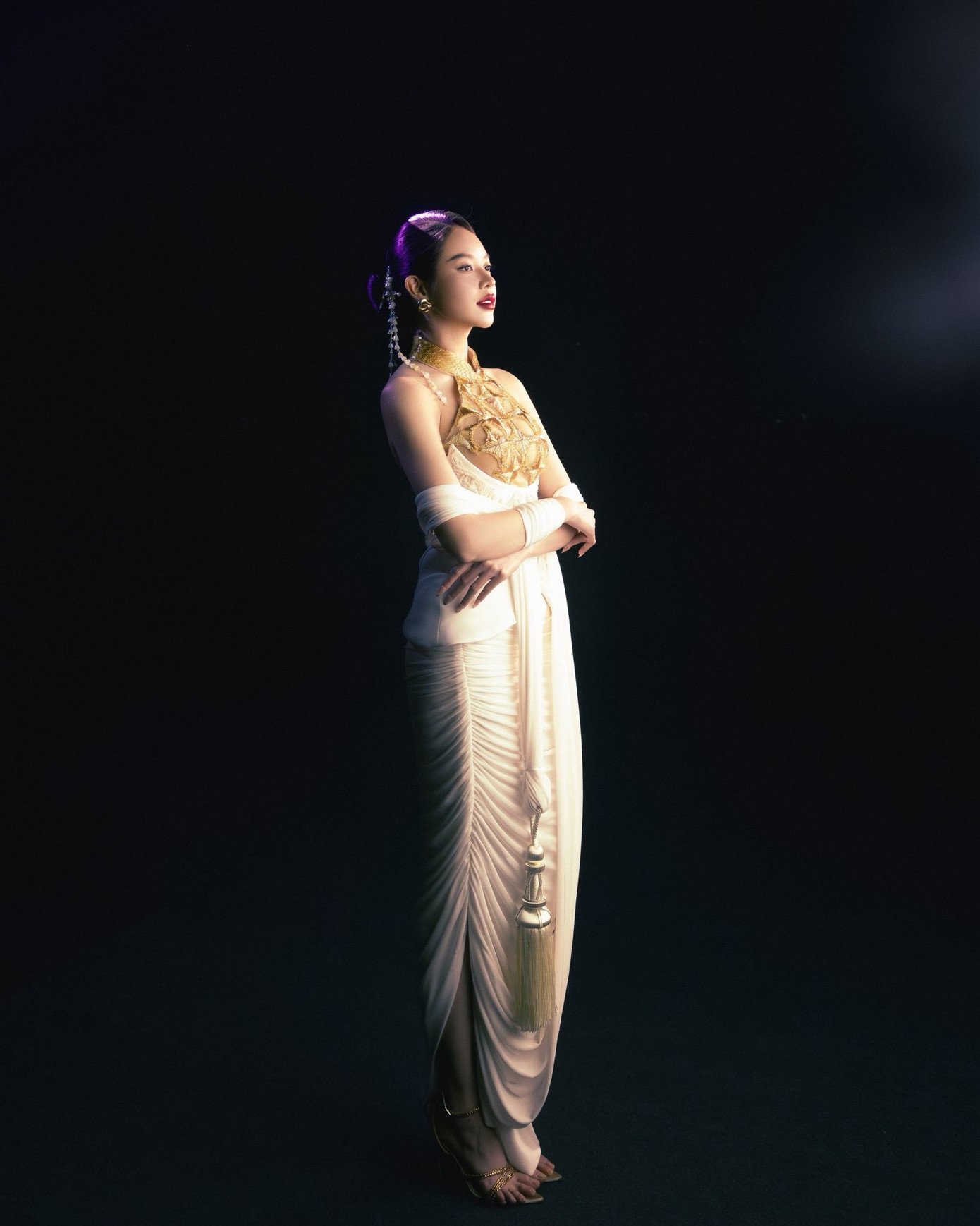Mẫu váy là sản phẩm của nhà thiết kế Trần D Trí, khai thác chất liệu văn hóa Việt Nam trong ngôn ngữ thời trang đương đại. Thông qua phom dáng, kỹ thuật dựng khối và xử lý bề mặt, trang phục mang đến sự cân bằng giữa nét nữ tính, sức mạnh và tính biểu tượng. Đây cũng là tinh thần xuyên suốt trong sáng tác của nhà thiết kế, khi văn hóa Việt Nam được tái hiện một cách tiết chế và hiện đại.