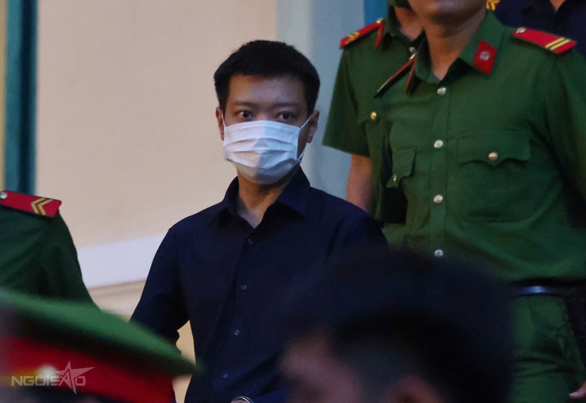 Các bị cáo khác cũng lần lượt được đưa rời phòng xét xử, di chuyển ra xe.