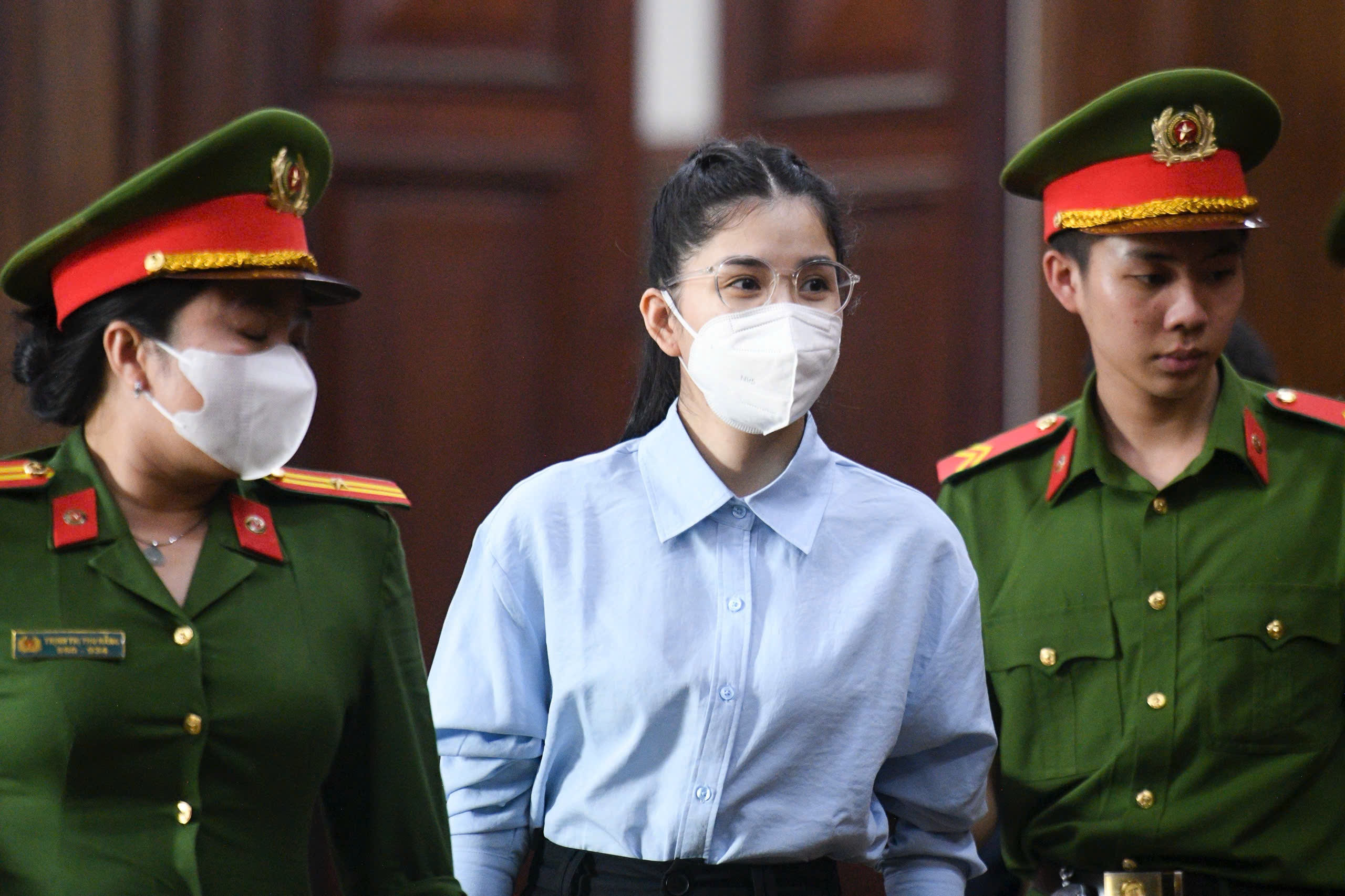 Bị cáo Nguyễn Thúc Thùy Tiên (Hoa hậu Hòa bình quốc tế 2021, SN 1998) bị tuyên mức án 2 năm tù, phạt bổ sung 50 triệu đồng.