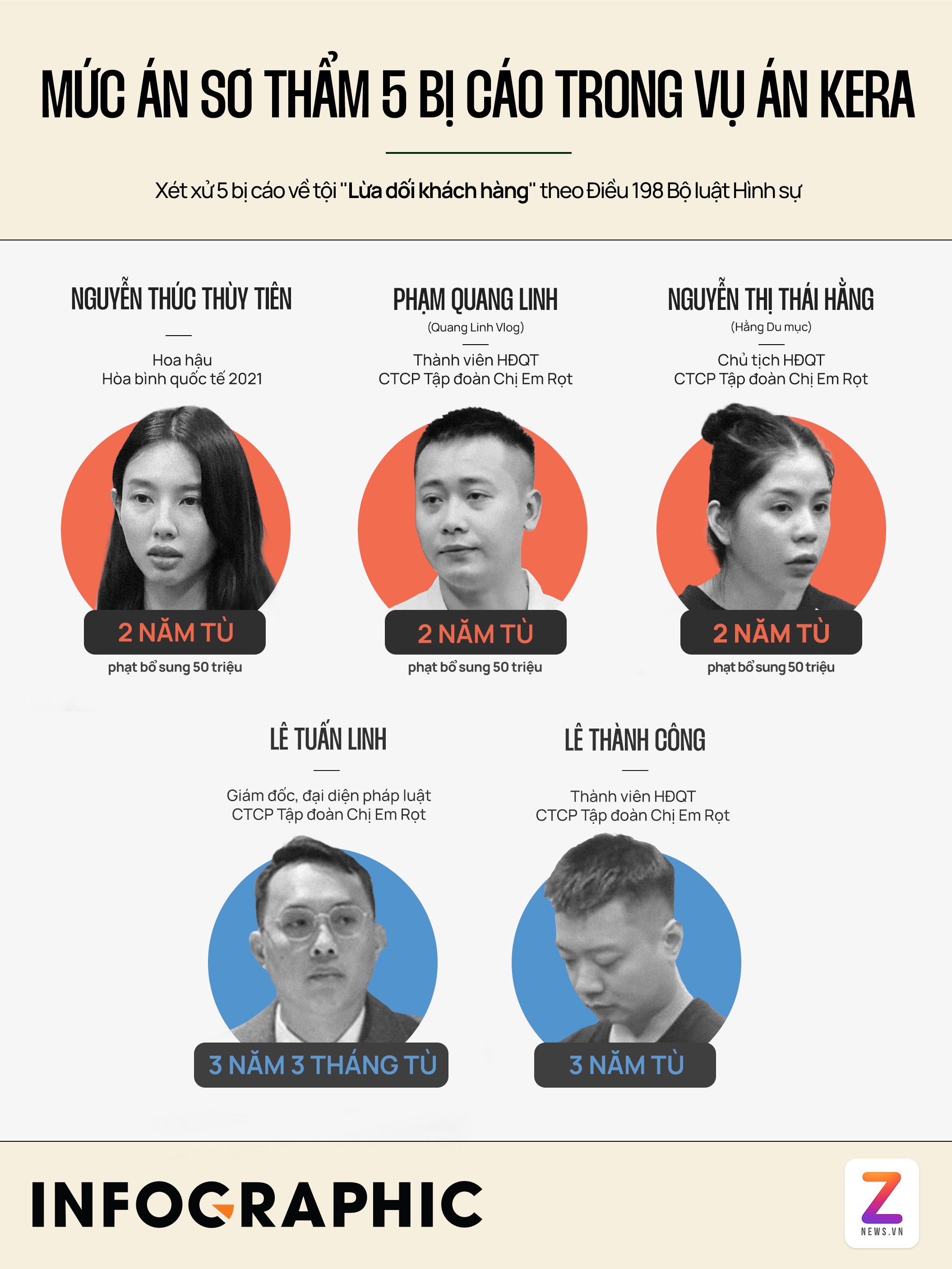 Tòa tuyên án đối với Thùy Tiên, Hằng Du Mục, Quang Linh Vlog Ngày 19/11, Hội đồng xét xử TAND TP.HCM tuyên phạt 5 bị cáo trong vụ án kẹo Kera về tội "Lừa dối khách hàng".