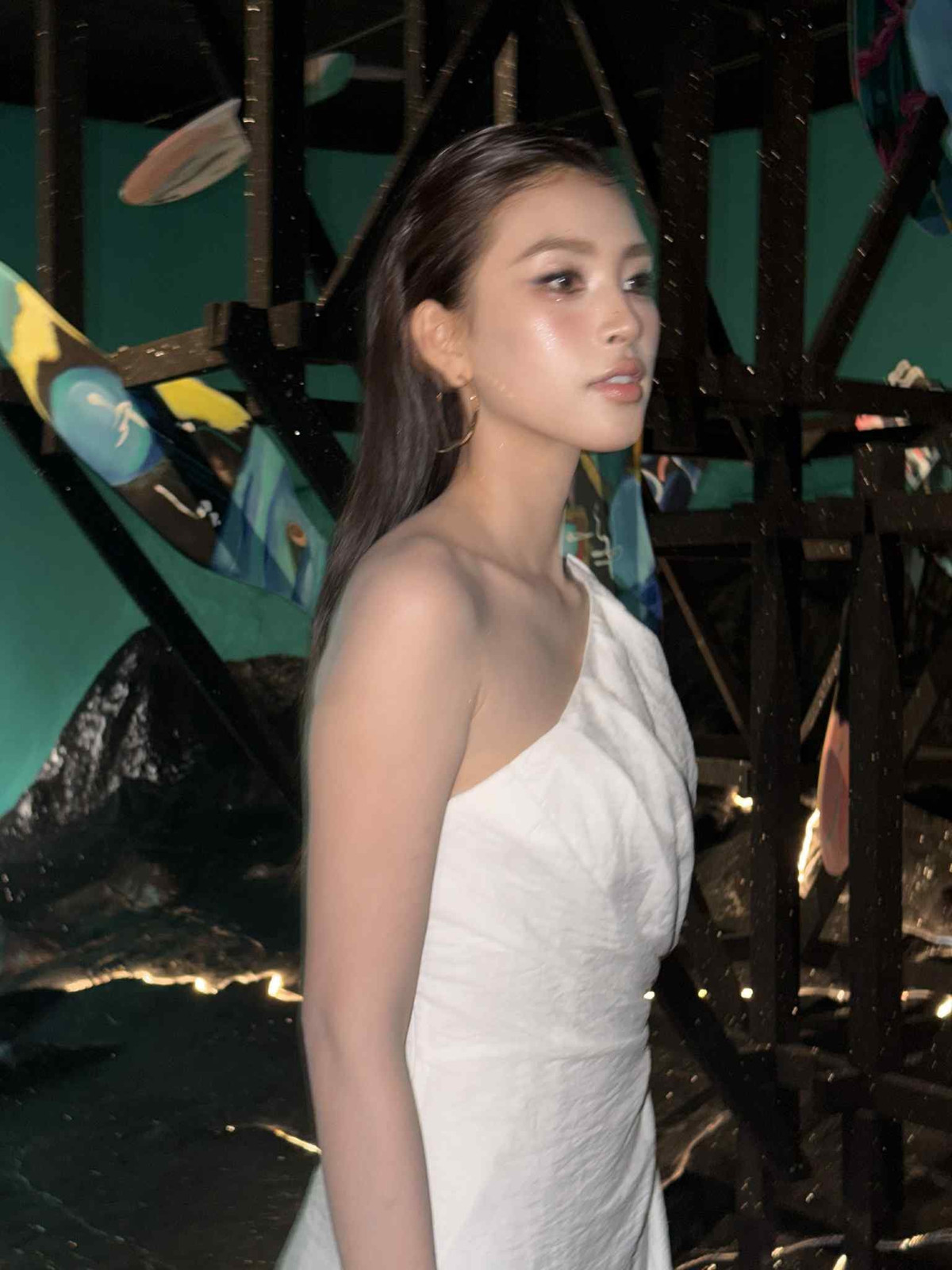 Mái tóc buông tự nhiên, kết hợp phần mái thưa mềm mại, tạo dựng hình ảnh một Tiểu Vy vừa trưởng thành, vừa giữ lại nét thơ ngây.