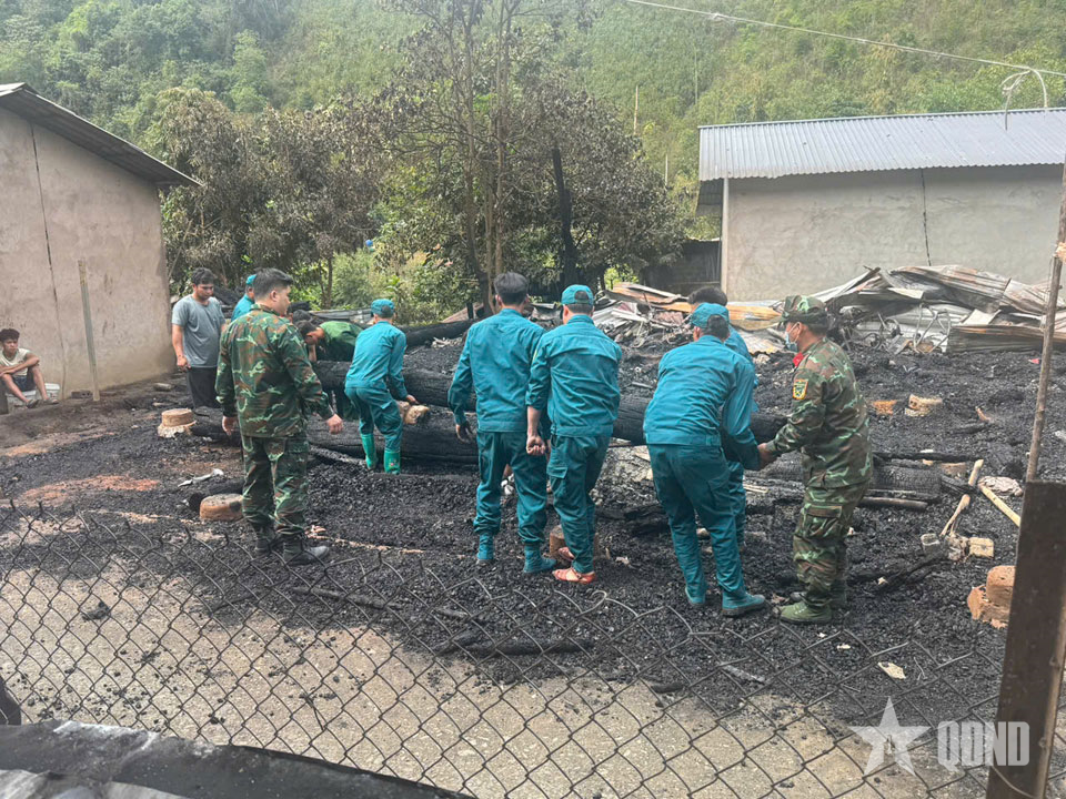 Bộ đội và dân quân tham gia khắc phục hậu quả vụ hỏa hoạn.