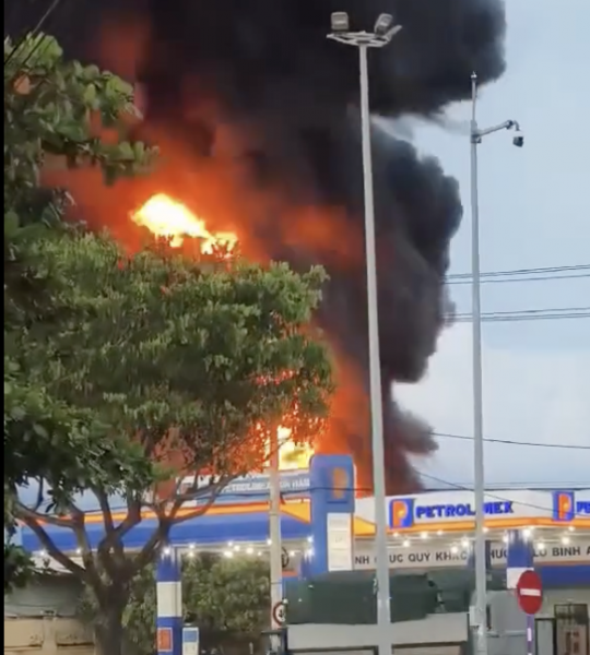 Ngọn lửa bốc cao cả chục mét sau cửa hàng Petrolimex 9.