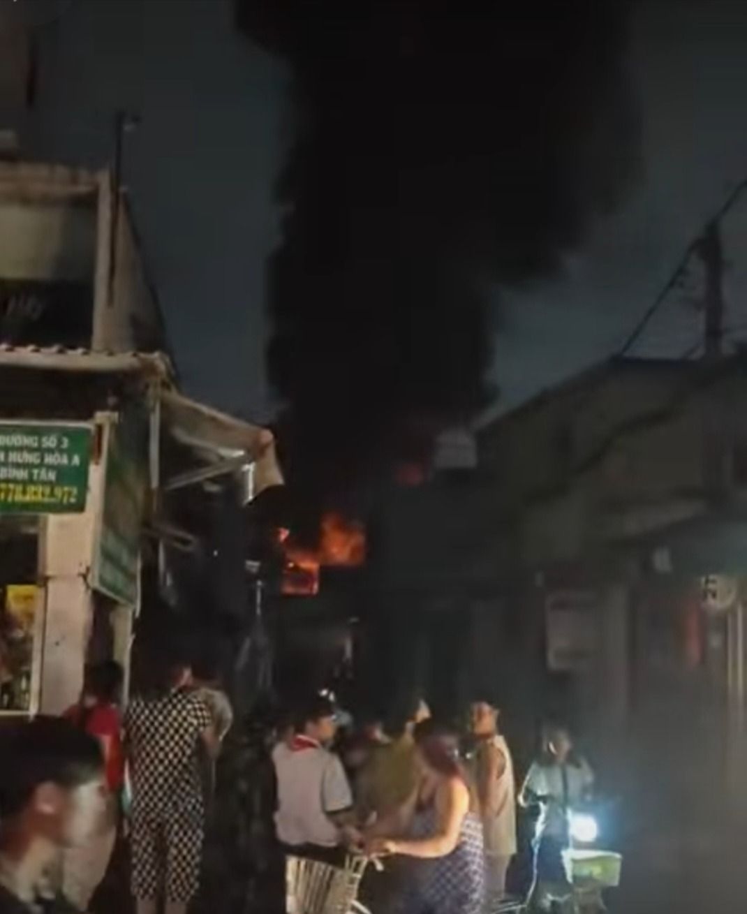 Ngọn lửa bùng lên từ kho phế liệu nằm giữa khu dân cư tại phường Bình Hưng Hòa