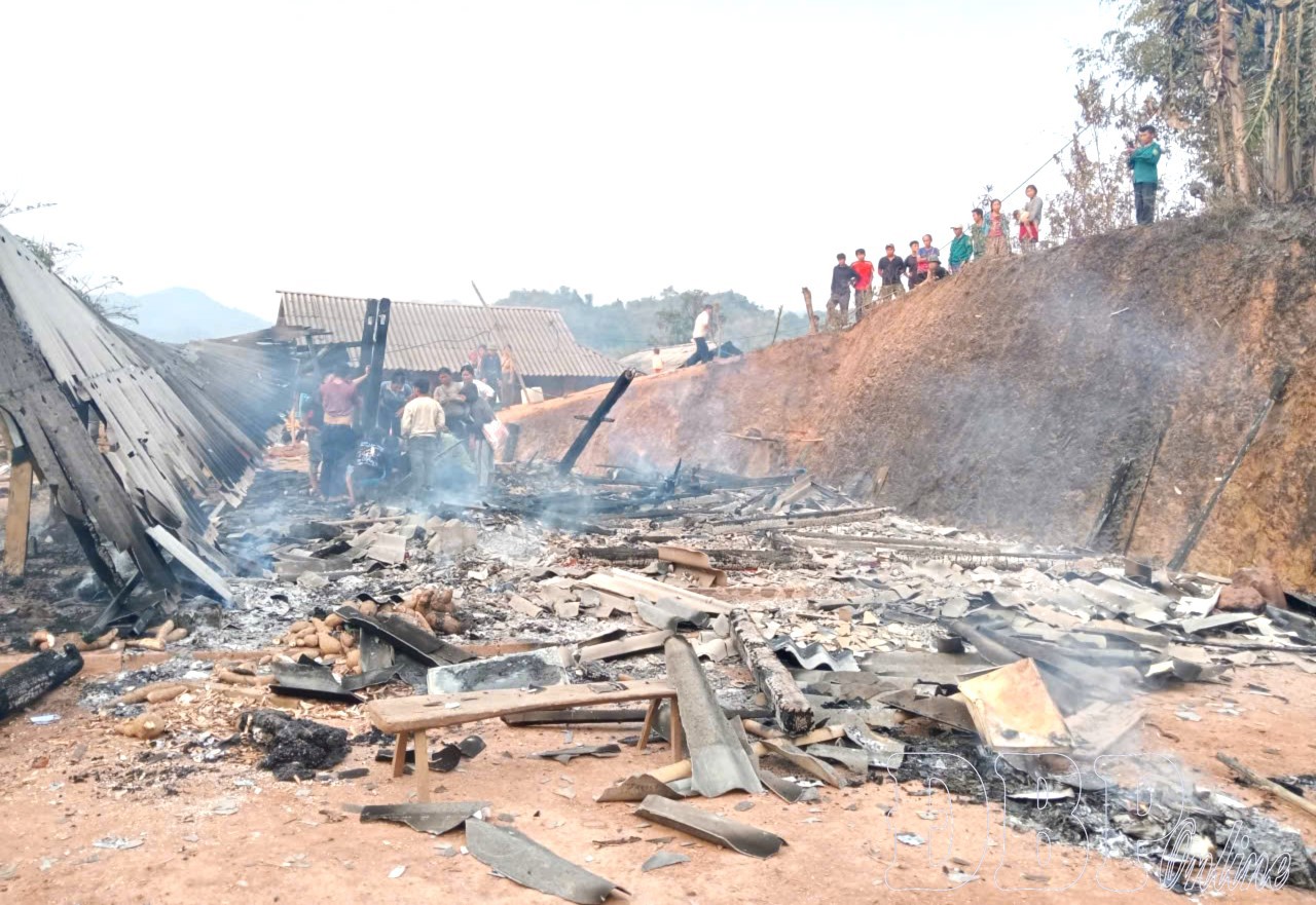 Ngọn lửa bùng phát bất ngờ và nhanh chóng lan rộng, thiêu rụi hoàn toàn căn nhà gỗ cùng toàn bộ tài sản bên trong. Ghi nhận ban đầu, vụ cháy đã gây thiệt hại khoảng 60 bao thóc, toàn bộ quần áo, giấy tờ và nhiều vật dụng thiết yếu.