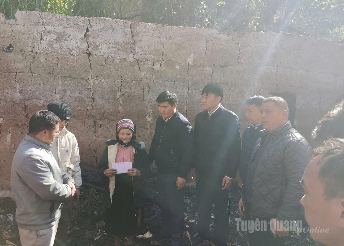 Lãnh đạo Đảng ủy, UBND xã đã đến thăm hỏi, động viên và hỗ trợ kinh phí cho gia đình Bà Vừ Thị Vá.