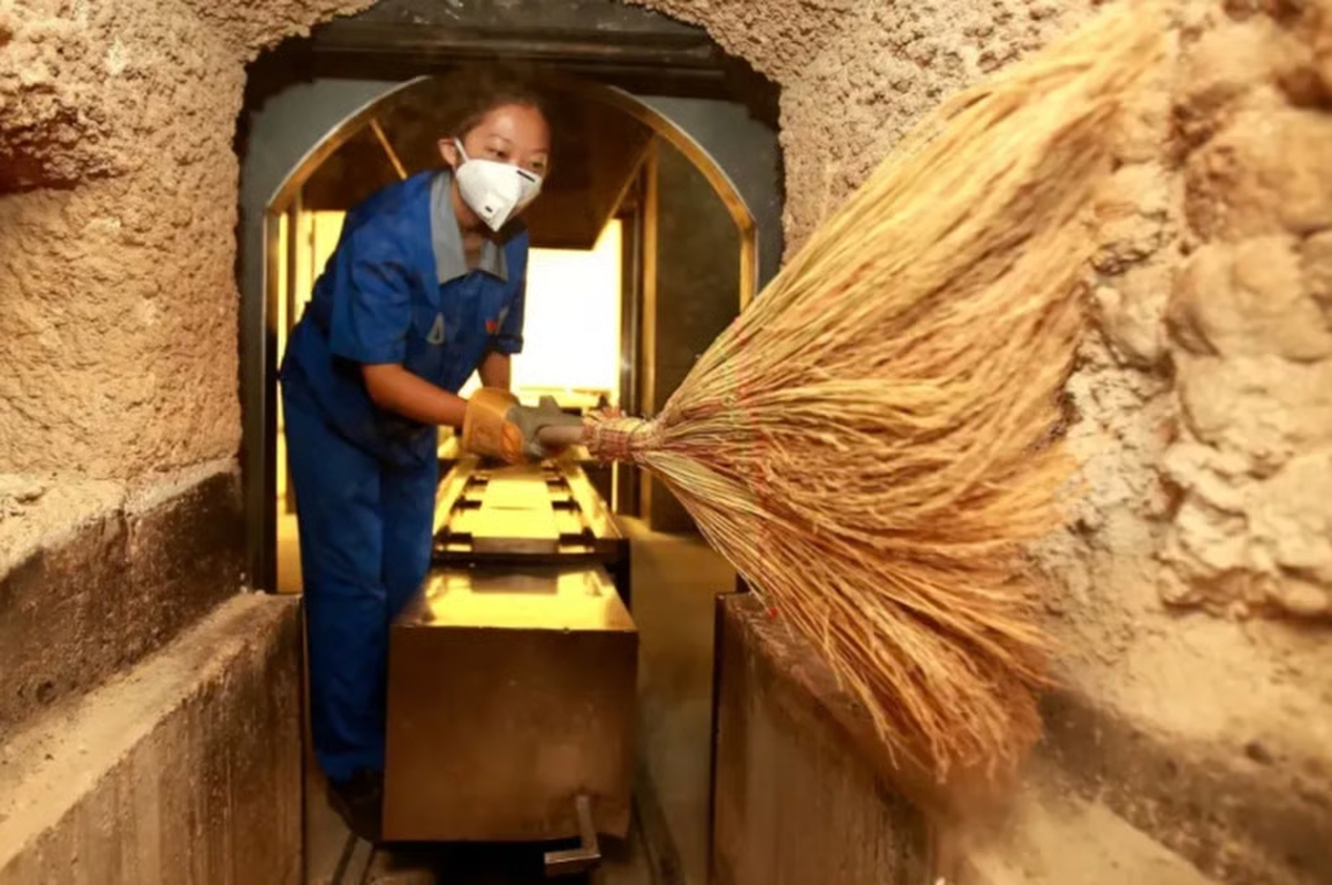 Bên trong phòng hỏa táng, nhiệt độ có thể lên tới trên 40°C. Nhiều năm làm việc trong môi trường nhiệt độ cao như vậy đã khiến khuôn mặt của Yun Xiaolin xuất hiện những vết nám khó phai.