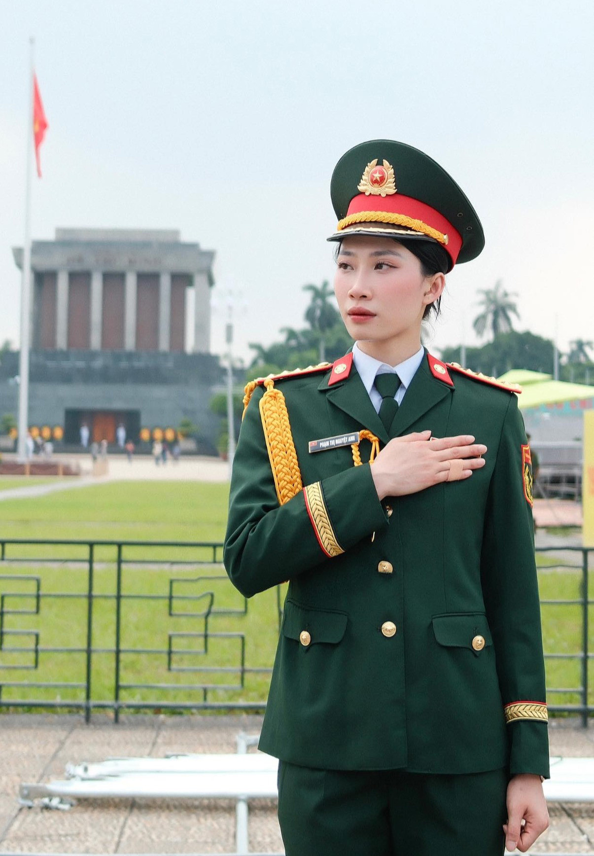 9X càng trở nên xinh đẹp trong bộ quân phục.
