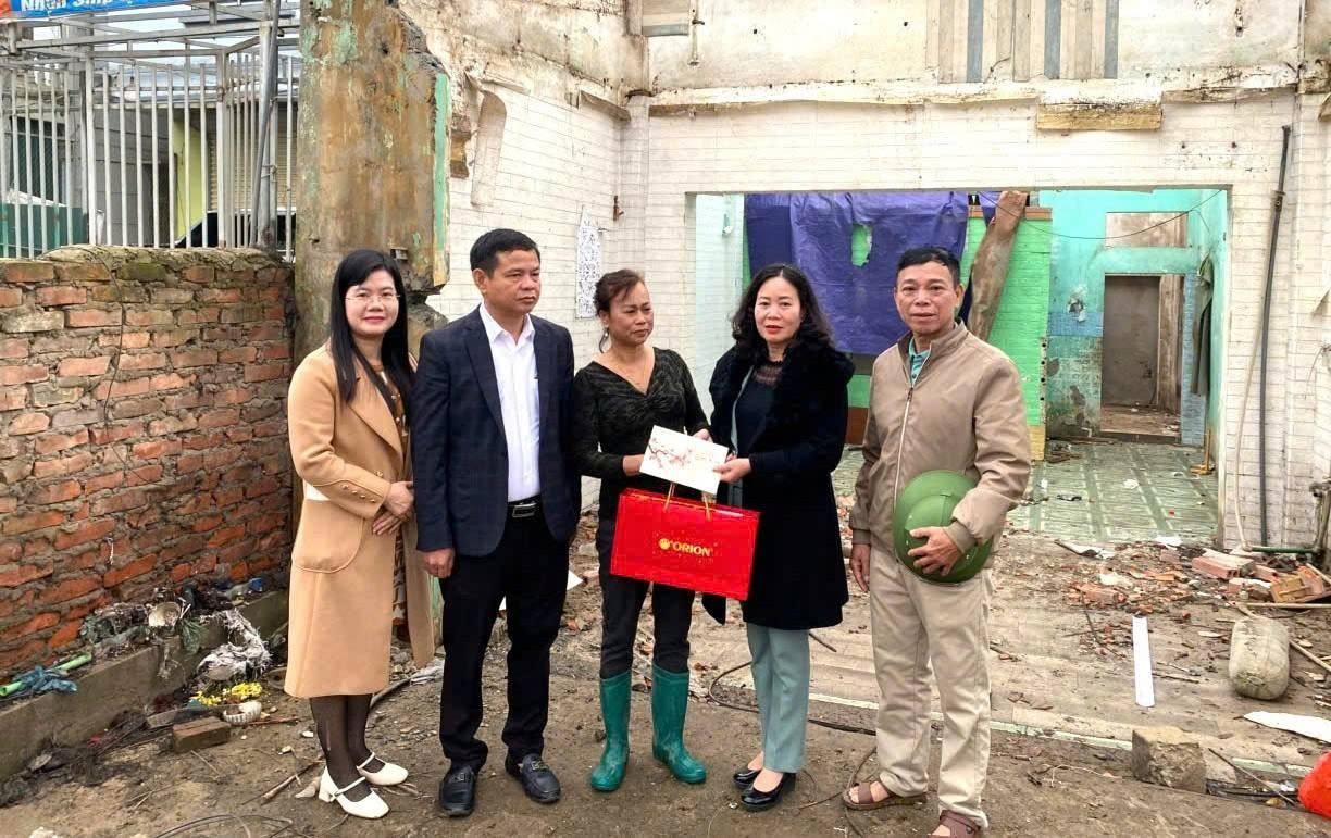 Việc thăm hỏi, tặng quà dịp Tết không chỉ mang ý nghĩa vật chất, mà còn là sự động viên tinh thần đối với các gia đình đã tiên phong bàn giao mặt bằng. Ảnh: Vũ Vân.