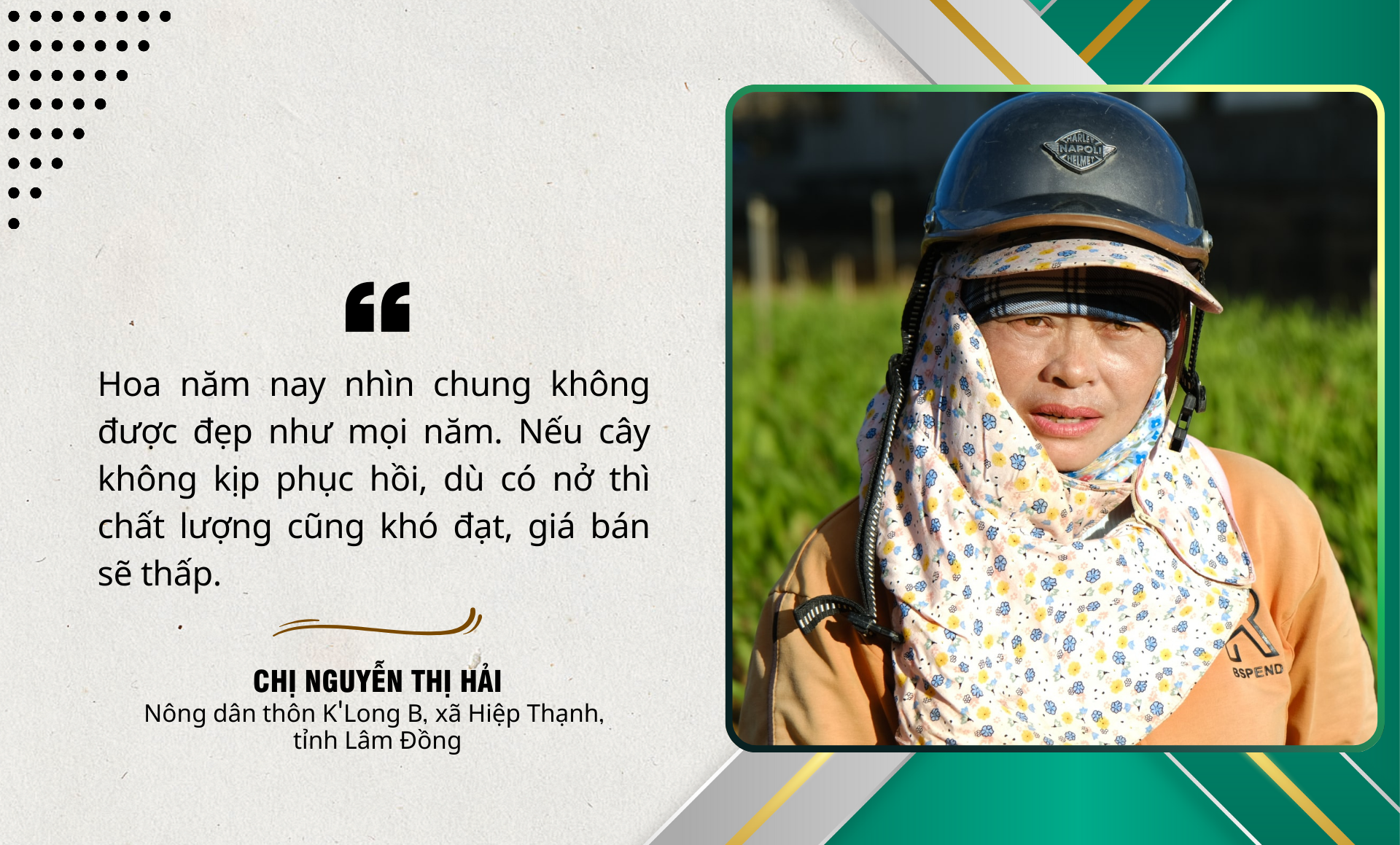 Nỗi lo càng lớn khi một số diện tích bị ảnh hưởng nặng bởi mưa lũ ngay từ đầu vụ, khả năng phục hồi thấp. Ông Đặng Mạnh Hùng, thôn K’Long C, cho biết mưa lũ đã khiến nhiều diện tích hoa sinh trưởng không đồng đều. Trong khi đó, chi phí đầu tư cho giống, phân bón, thuốc bảo vệ thực vật và công chăm sóc đều đã bỏ ra từ sớm, nhưng hiệu quả vụ mùa vẫn còn là dấu hỏi lớn.