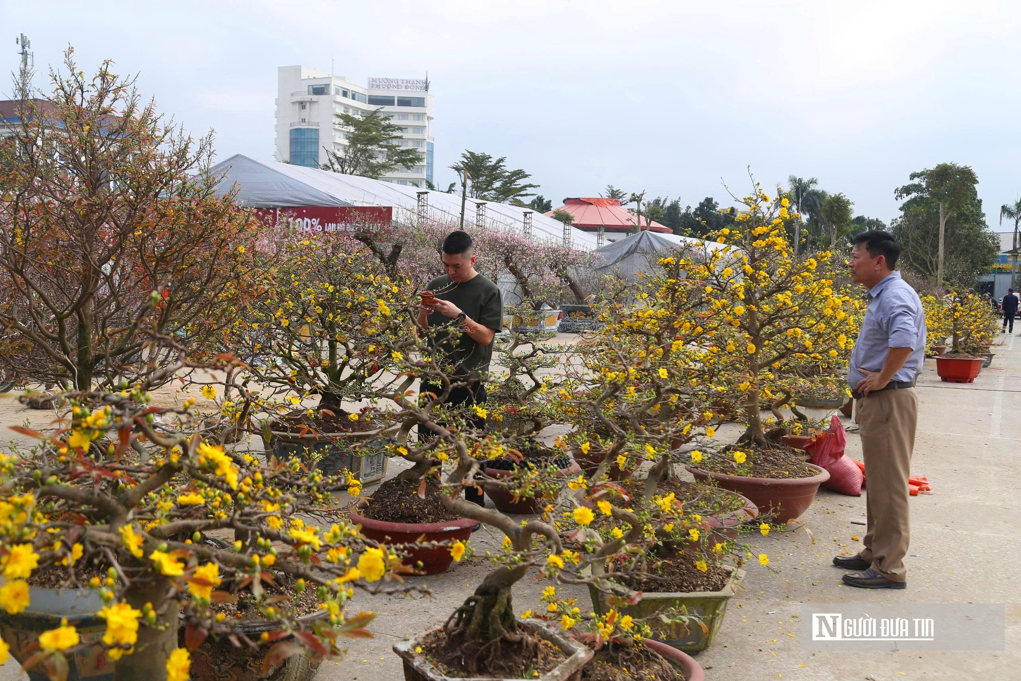 Thị trường năm nay không chỉ mai vàng truyền thống, còn có mai cổ thụ, mai giảo, mai bonsai với nhiều mức giá phù hợp từng phân khúc khách hàng. "Hoa mai năm nay khá là đẹp. Tôi đưa khoảng 200 cây, bày bán ở Quảng trường Hồ Chí Minh, đường 72m và sân bóng Vinh. Giá mai năm nay không có biến động nhiều so với năm ngoái. Giá dao động từ vài trăm nghìn đến hàng chục triệu đồng. Hy vọng năm nay tôi sẽ bán hết và kịp về ăn Tết với gia đình", anh Hà Bảo Trọng - quê ở tỉnh Bình Định cho biết.