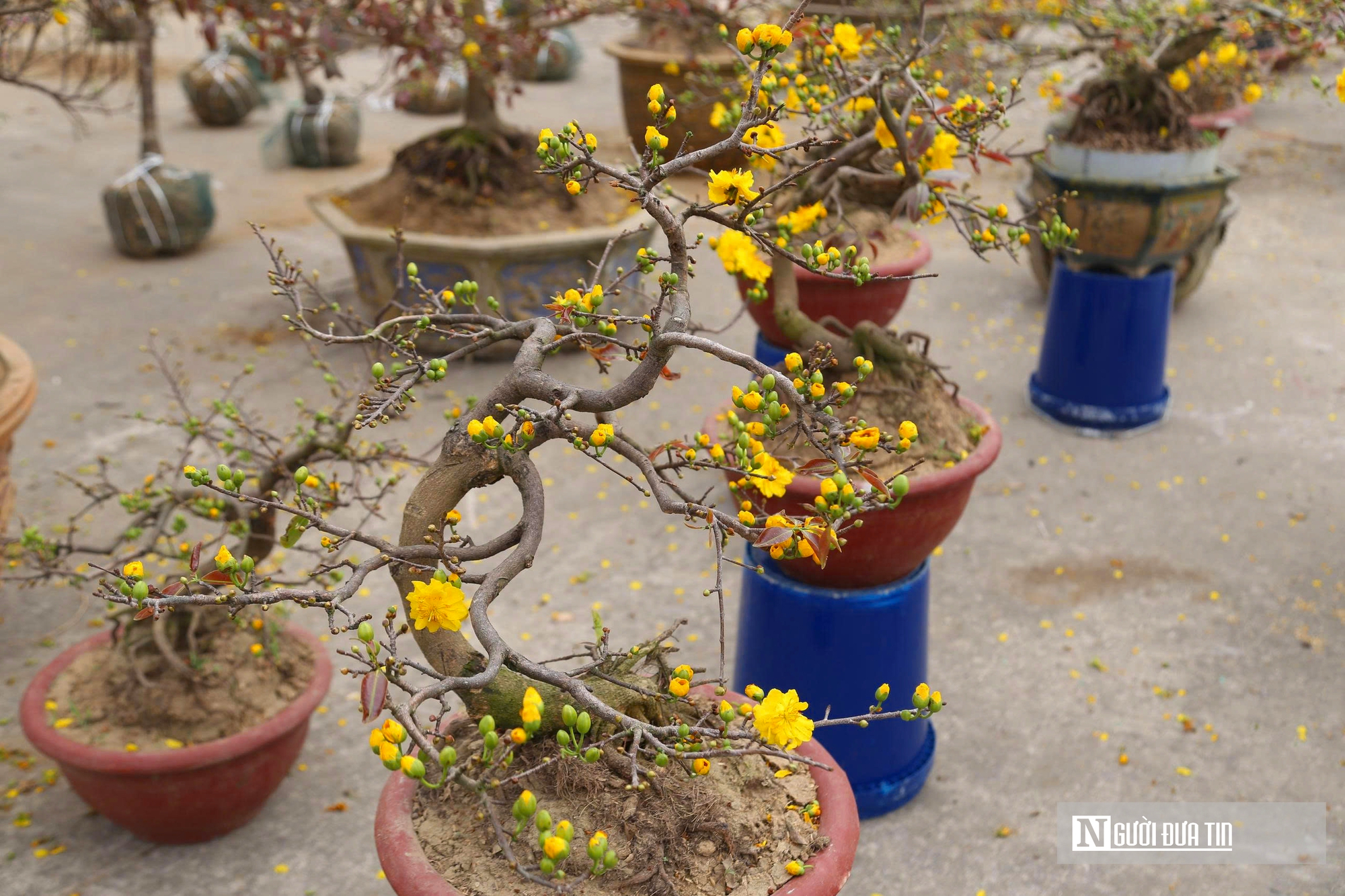 Những cây mai được uốn thế công phu, gốc to, dáng đẹp luôn thu hút sự chú ý của người chơi cây cảnh. Hoa mai được người bán chăm sóc kĩ lưỡng để đảm bảo nở đều và luôn tươi tắn khi đến tay khách hàng.