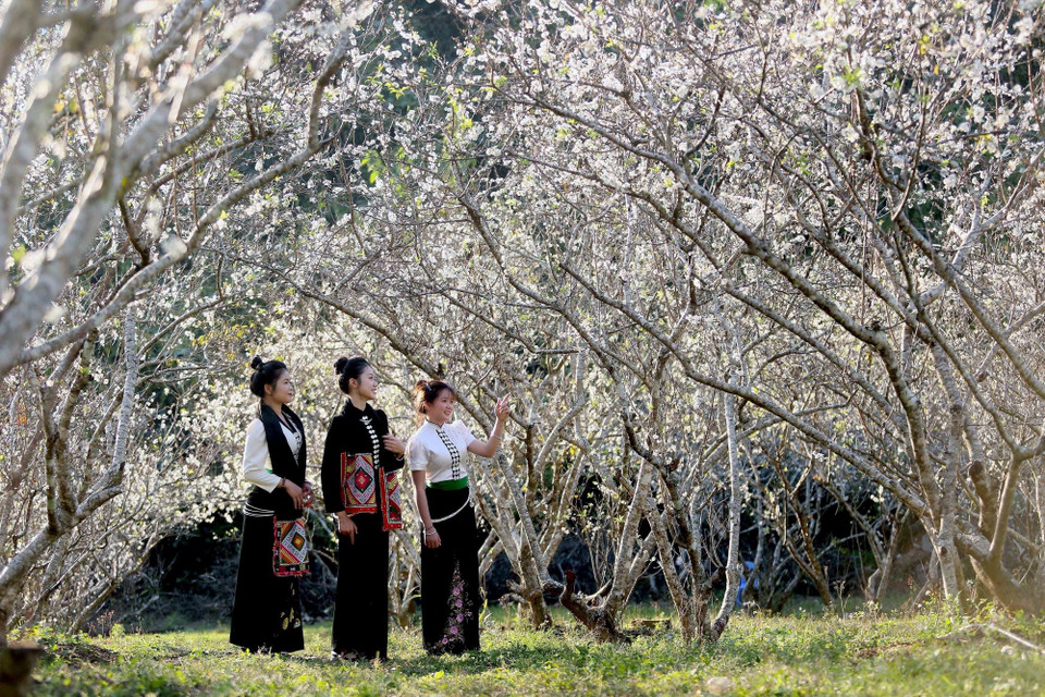 Sắc trắng tinh khôi, thuần khiết của hoa mận khiến bất cứ ai cũng muốn một lần đến để cảm nhận và lưu lại những khoảnh khắc khó quên. (Ảnh: Quang Quyết/TTXVN)