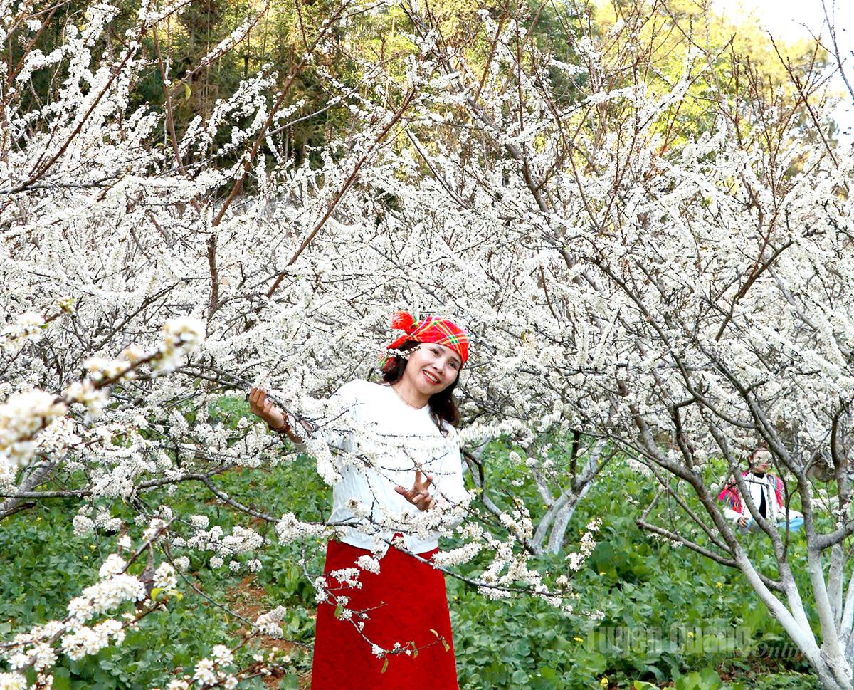 Hoa mận nở thu hút du khách đến tham quan, trải nghiệm.