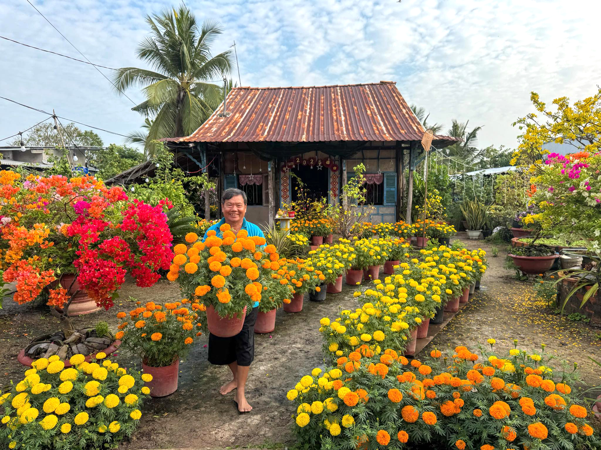 Hoa miền phù sa ít khi được nhắc đến vì hương, mà được trân quý bởi tên gọi và ý nghĩa. Vạn thọ là mong ước cho sức khỏe, trường tồn. Cát tường là lời chúc an lành. Cúc đồng tiền gợi hy vọng về năm mới sung túc. Mai vàng, loài hoa không thể thiếu trong mỗi gia đình Nam bộ những ngày tết, mang theo khát vọng phúc lộc, hanh thông. Một chậu hoa kiểng vì thế không chỉ để làm đẹp không gian sống, mà còn là nơi gửi gắm niềm tin, ước nguyện cho một năm mới bình yên, đủ đầy.