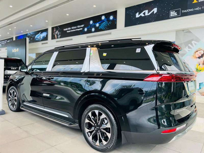 Phần đuôi của Carnival cũng gây ấn tượng mạnh với lối thiết kế liền mạch: Cụm đèn hậu full LED được thiết kế nối dài hết chiều rộng với logo Kia ở trung tâm, các dải LED được làm theo dạng Heart beat rất sống động. Xe trang bị đầy đủ camera trước, sau và hệ thống 4 cảm biến, cùng với cốp mở điện có dung tích chứa đồ lớn, lên tới 1.139 lít. Cả 7 phiên bản đều được trang bị bộ mâm đa chấu kích thước 19 inch, tạo hình mới và phay kim loại vô cùng đẹp mắt, đi cùng bộ lốp Michelin chất lượng cao.