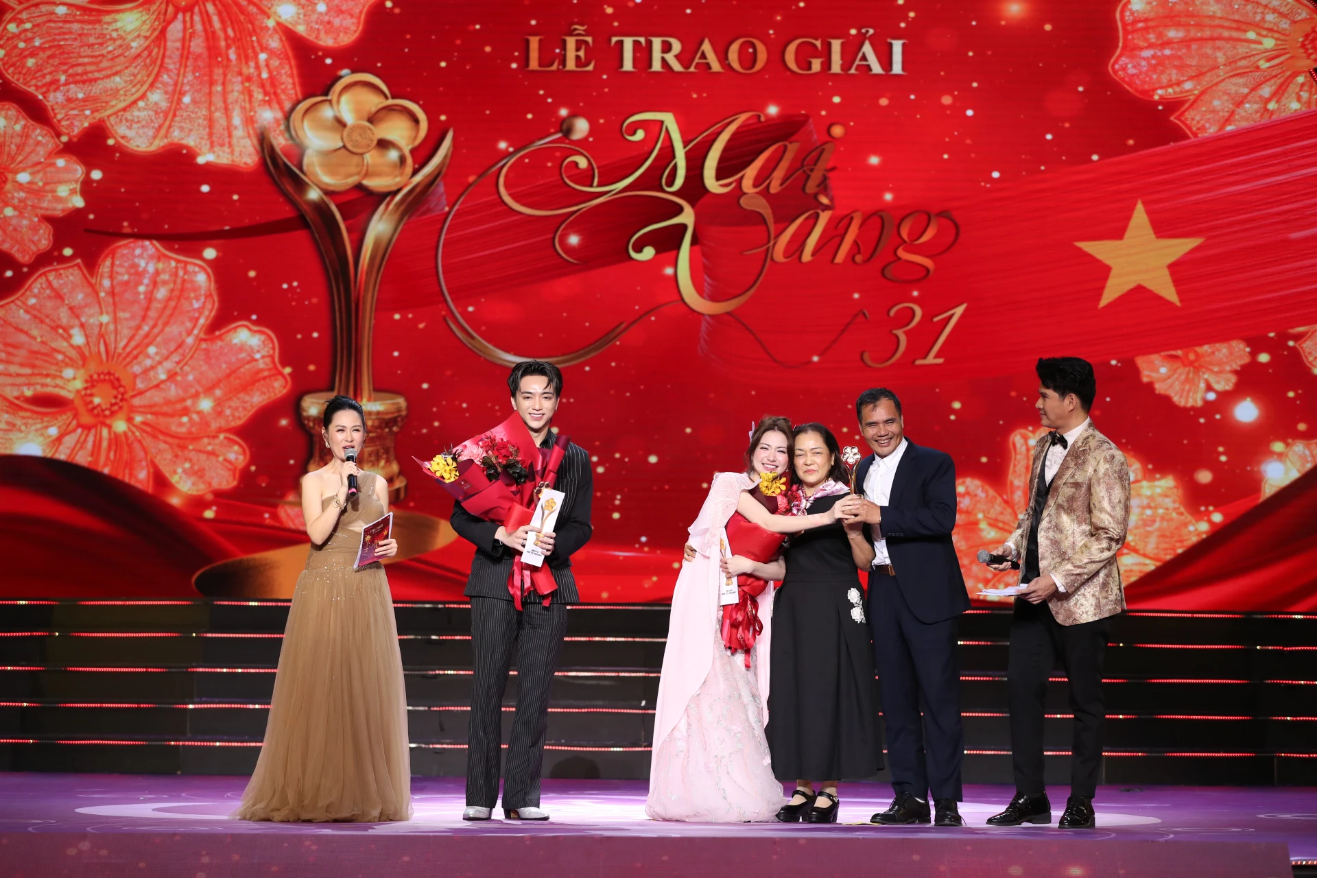 Hòa Minzy mời cha mẹ lên sân khấu khi nhận giải - Ảnh: BTC