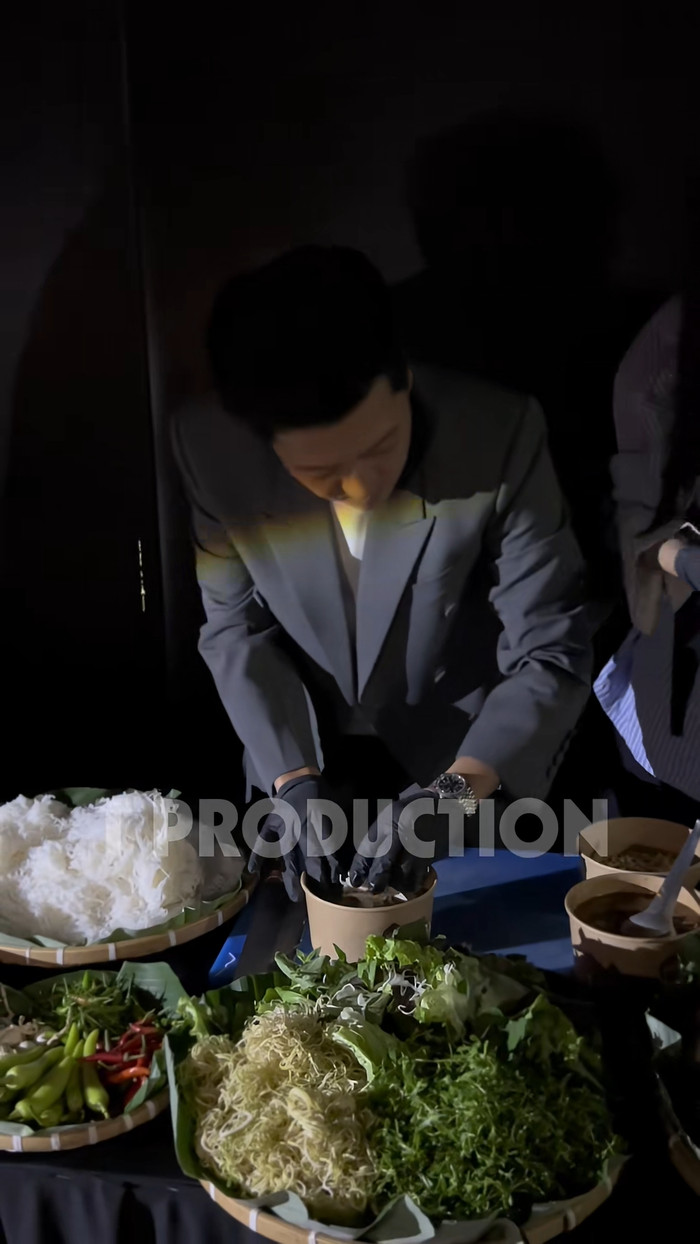 Trường Giang tự tay chuẩn bị đồ ăn ở fan concert của Hòa Minzy. Ảnh: tproductionofficial