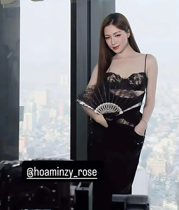 Thay vì những bộ cánh kín đáo, Hòa Minzy chọn thiết kế đen chủ đạo với bra ren mỏng kết hợp corset ôm dáng. Kết cấu trang phục giúp làm nổi bật phần vai trần, đường cong cơ thể và làn da trắng mịn của nữ ca sĩ. Chất liệu ren xuyên thấu được xử lý tinh tế khiến tổng thể vừa táo bạo vừa giữ được sự sang trọn.