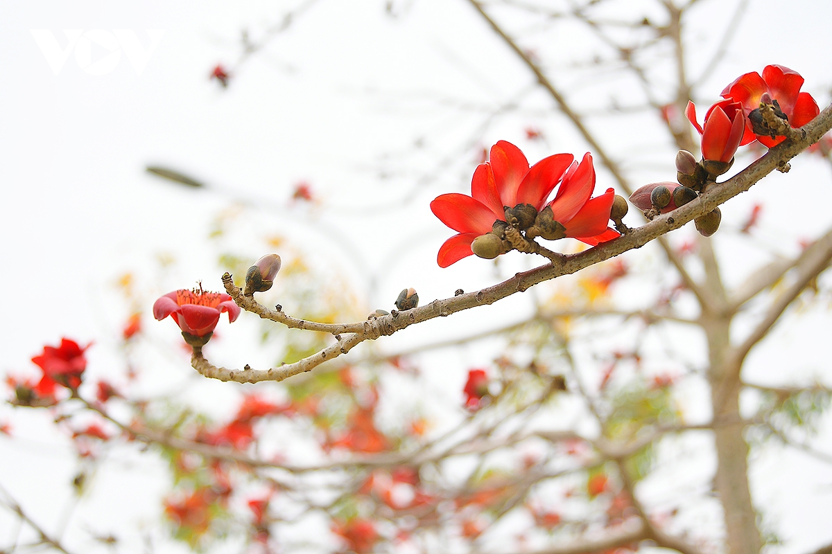 Cây hoa gạo còn được gọi là hoa mộc miên hay hoa pơ lang, được trồng nhiều ở ngoại thành Hà Nội. Hoa có năm cánh màu đỏ tươi không chỉ đẹp mắt mà còn có thể chế biến thành món ăn.