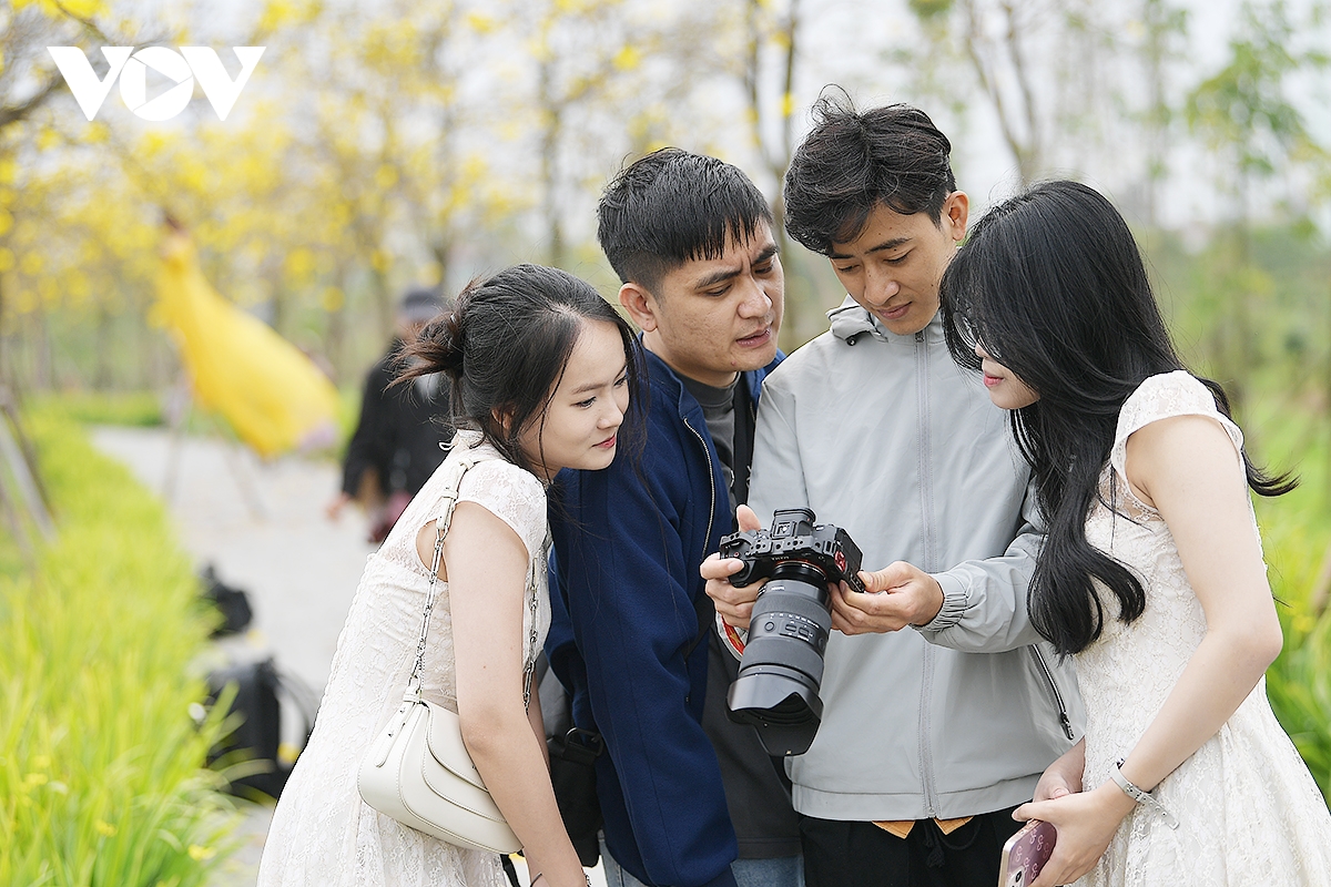 Nhiều gia đình, các bạn trẻ không thể bỏ lỡ những khoảnh khắc đẹp bên con đường hoa này, nhiều người thuê thợ nhiếp ảnh để có những bức ảnh đẹp, có người chỉ dùng điện thoại di động tự chụp.