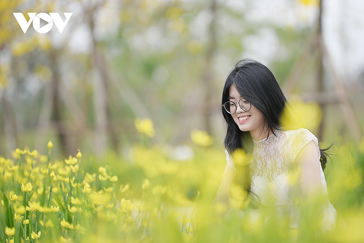 Thiếu nữ tươi tắn check-in trong sắc hoa vàng rực rỡ, lung linh.