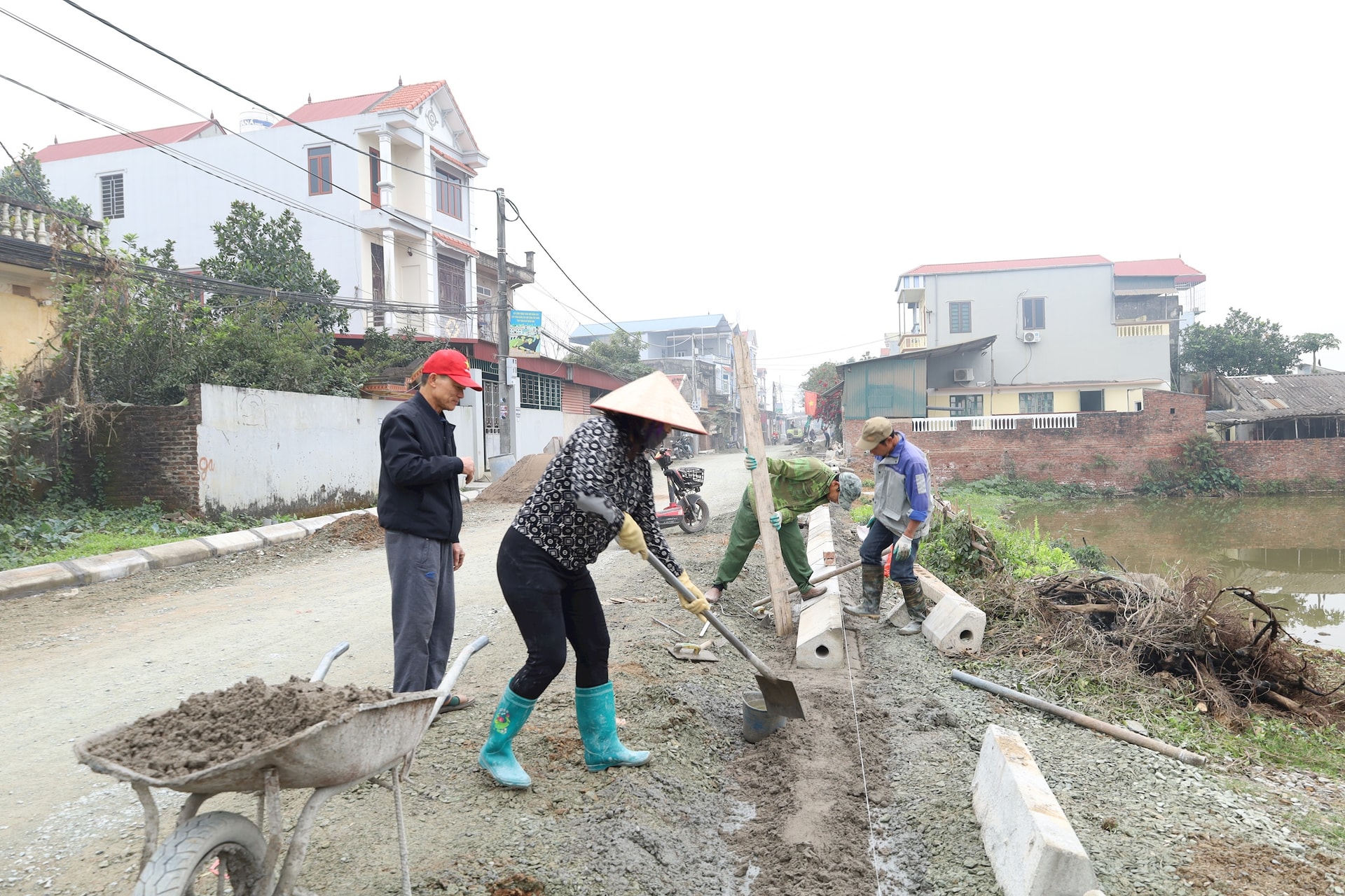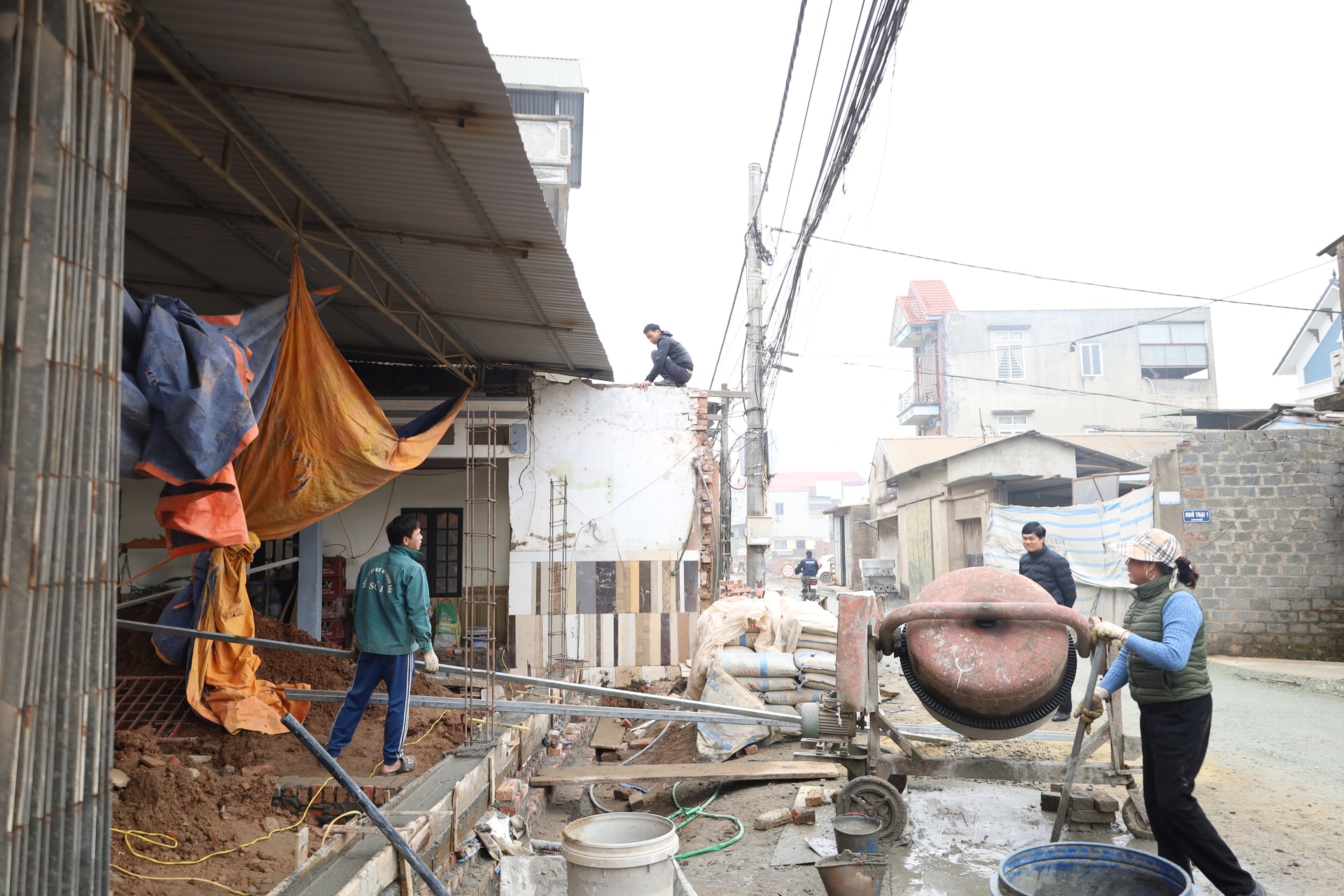 Nhờ sự đồng thuận của nhiều hộ dân, nhà thầu đang đẩy nhanh tiến độ thi công tuyến đường phục vụ nhân dân đi lại dịp Tết Nguyên đán sắp tới. Ảnh: Kim Nhuệ