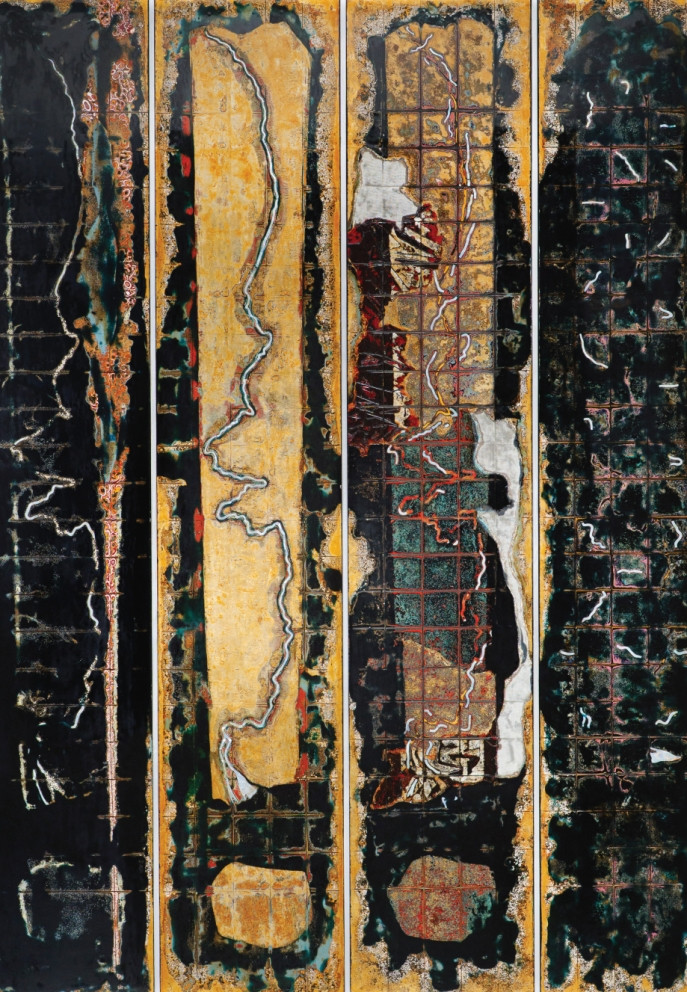 Bức "Bốn câu đối trên dòng Mekong" của Trần Quốc Giang.