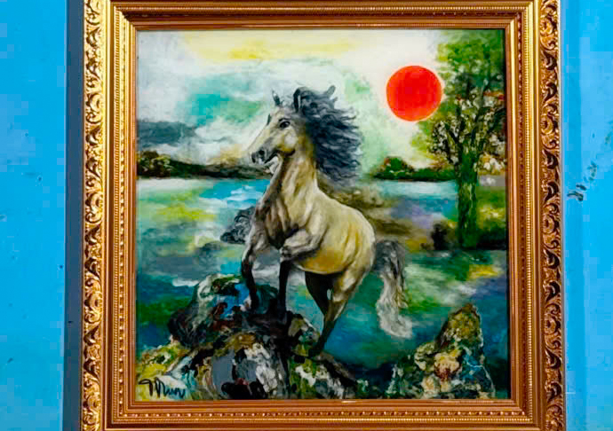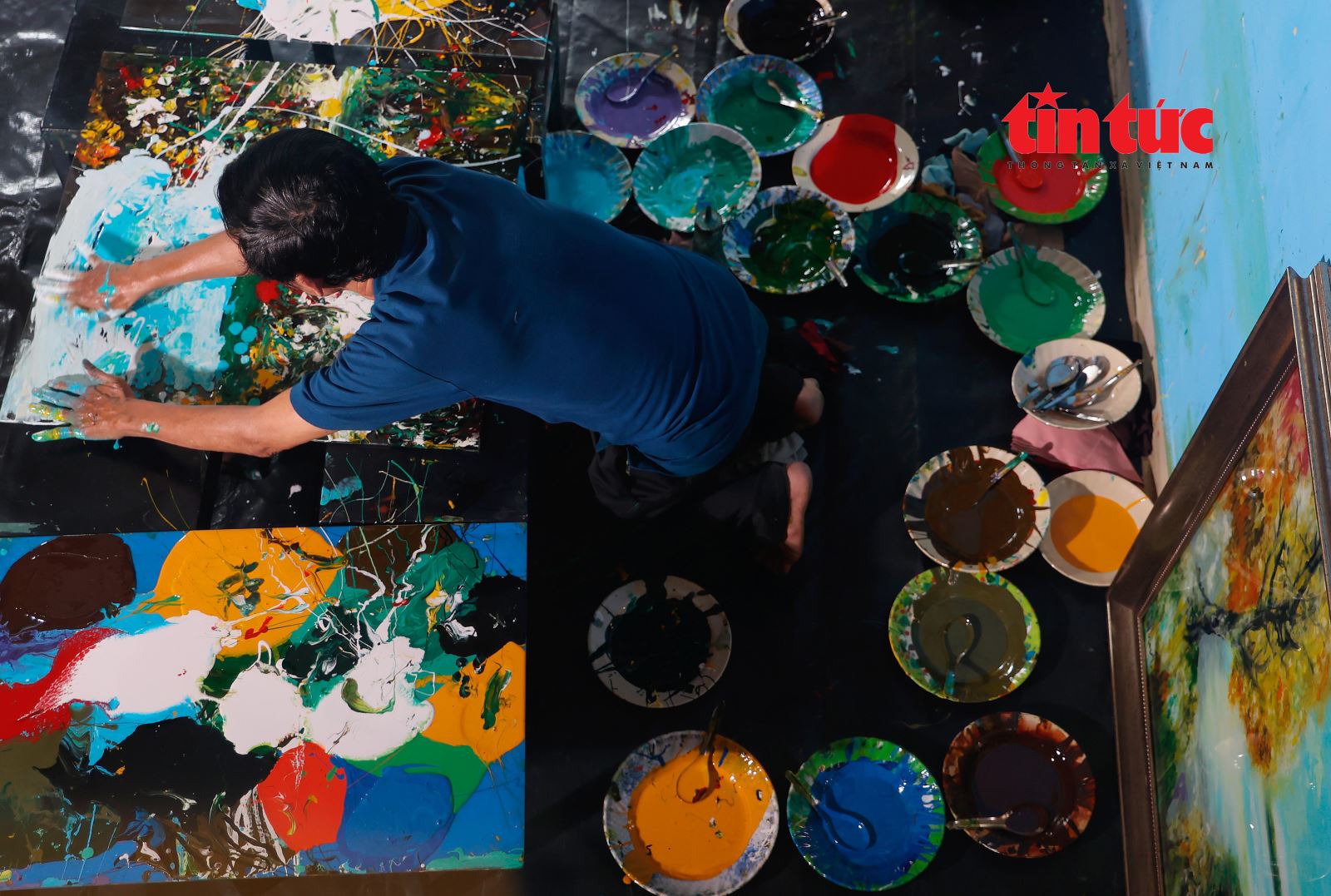 Dù đã bước sang tuổi 65, ngọn lửa đam mê với nghệ thuật vẽ tranh sơn dầu ngược kính của họa sĩ Đoàn Việt Tiến vẫn luôn rực cháy.