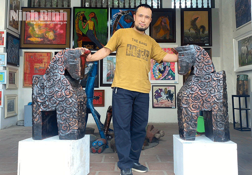 Hay có thể kể đến tác phẩm “Ngựa Xuân” độc đáo với chất liệu xi măng được anh kỳ công thực hiện, đem đến những cảm nhận khác biệt. Thể hiện tác phẩm nghệ thuật với chất liệu xi măng được đánh giá không phải là điều dễ dàng, đòi hỏi kinh nghiệm, cách làm, cách thể hiện khéo léo, sáng tạo. Màu sơn được sử dụng làm nổi bật, đồng thời tạo sức hút nghệ thuật riêng cho tác phẩm này.