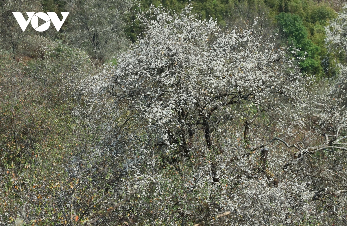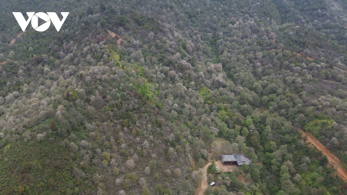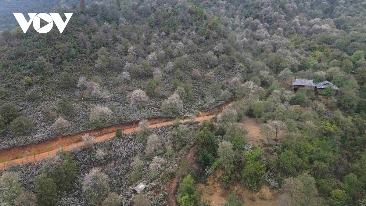 Những triền núi phủ kín hoa sơn tra nở rộ, tạo nên khung cảnh thơ mộng nơi vùng cao.